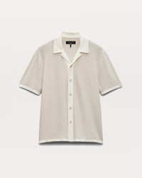 Updated for the season in terry yarn with a plush toweling texture, this knit camp shirt effortlessly transitions between any warm-weather activity, whether formal or casual. A distinctive zig-zag stitch and solid contrast trims complete its elevated look. Size & Fit Classic fit Size Medium: Back length 25 5/8", chest 44 3/4", sweep 43 1/2", sleeve length 19 1/4" Model is 6'1" wearing size medium Features & Details 49% Cotton, 27% Viscose, 24% Nylon Machine wash cold inside out with like colors, gentle cycle, do not bleach, lay flat to dry, cool iron on the reverse side if needed Suede rag & bone logo tab at sleeve cuff Metal buttons at front closure Imported Product ID: MBS25S036YF36