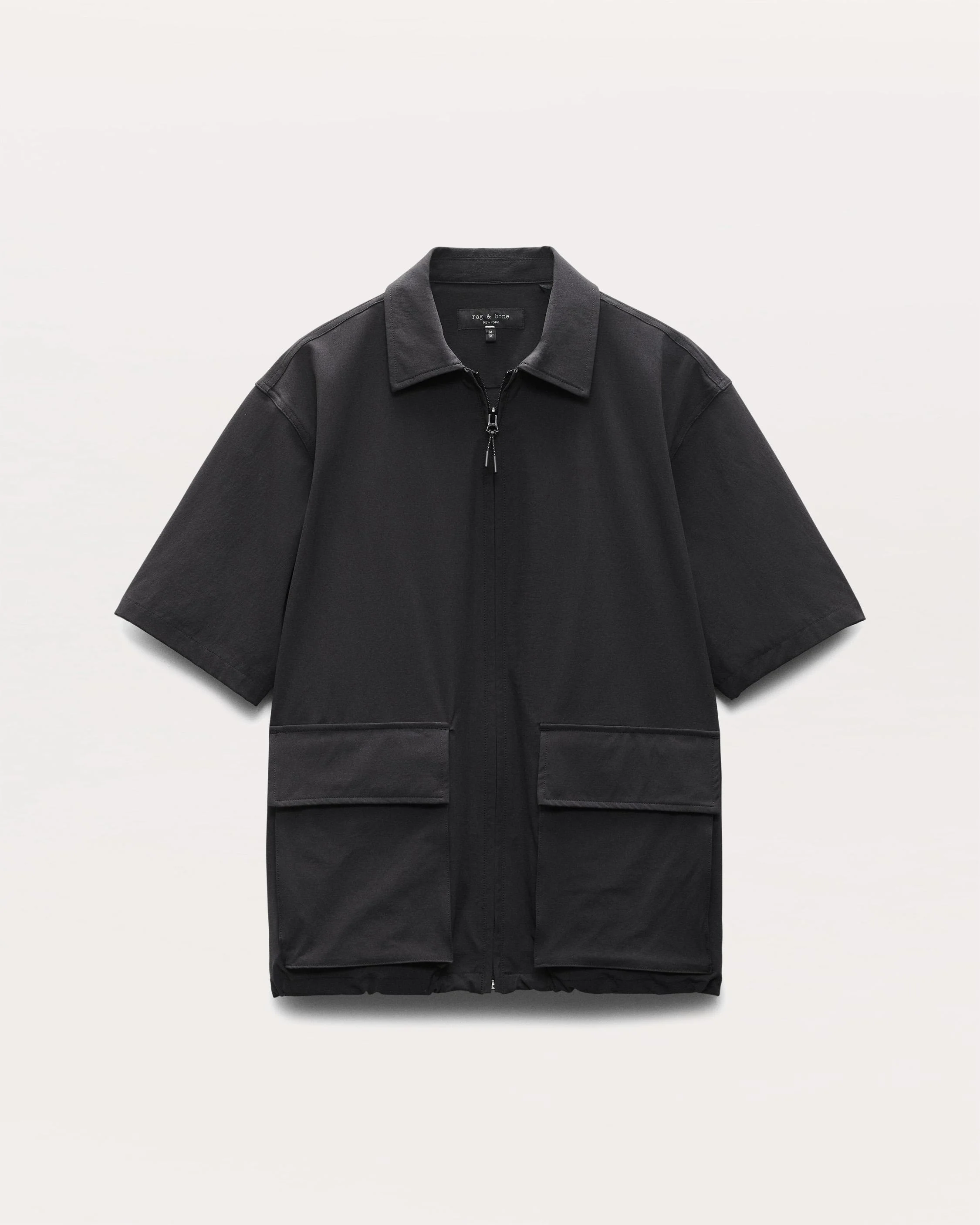 Optimized for comfort and ease. This short-sleeve overshirt is cut for a roomy fit from a lightweight, four-way stretch fabric that allows for effortless movement while maintaining a clean look. Flap pockets offer quick storage of essentials. The layer is part of our Performance Edit, a unique collection of refined yet ultra-versatile pieces designed to move with you anytime, anywhere, at the pace of modern life. Take your typical size for a looser look, or size down for a closer fit. Size & Fit Relaxed fit Size Medium: Back length 27 1/2", chest 48", sweep 47", sleeve length 20 3/8" Model is 6'1" wearing size medium Features & Details 89% Nylon, 11% Polyester Dry clean, do not wash, do not iron, do not bleach, line dry in shade Exposed front zipper and pocket, hidden snaps at pocket flaps and internal reflective piping Two front patch flap pockets Imported Product ID: MBW25PA028THML