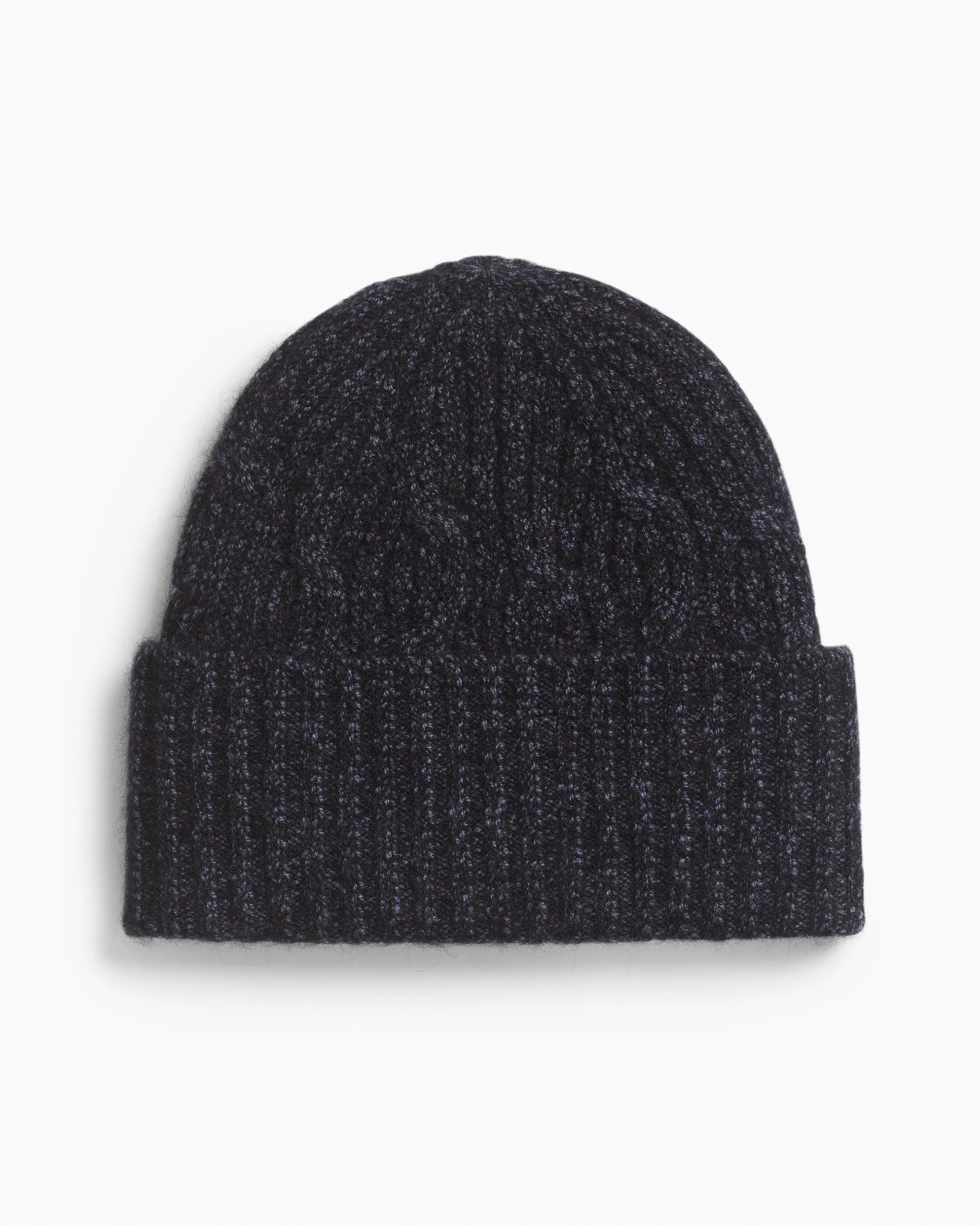 Cozy chic. Crafted from an insulating blend with wool and alpaca yarns, this beanie hat offers a soft texture and that classic cable-knit feel: warm and just chunky enough for a wrapped-up look. Our signature threaded bar tack detail features at the center front for a subtle statement. Size & Fit • Length to folded edge: 9.25" • Opening: 9.75" Features & Details • 62% wool, 22% alpaca, 15% polyamide, 1% elastane • Dry clean only • Fold-over brim • Imported Product ID: RO4425FKMAL