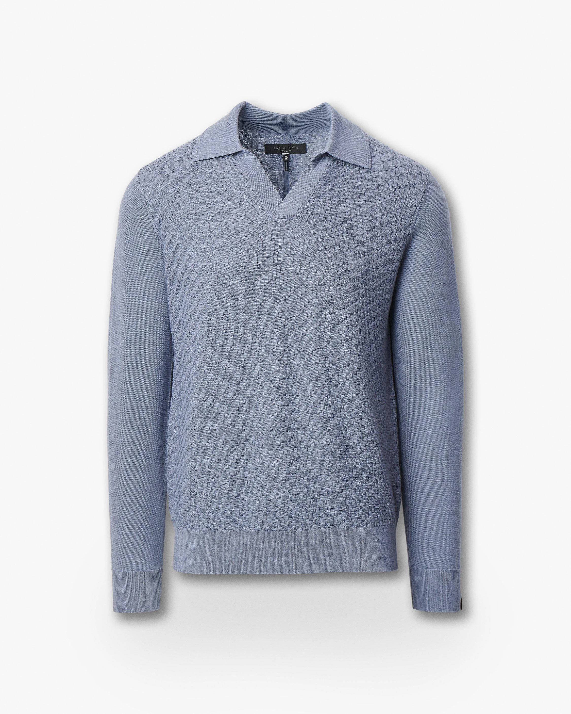 For every season. Knit from pure wool, this lightweight, long-sleeve sweater features our exaggerated take on a herringbone stitch for a unique texture. Complete with a buttonless Johnny collar, it's a polished style for any season. Pair yours with everything from suiting trousers to your favorite denim.