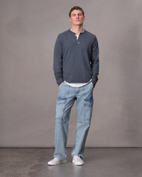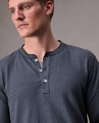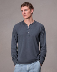 The Essential Flame Henley. Made from Tanguis Cotton, this heritage fabric is organic and fair trade, with extra-long fibers to make it super-soft and durable. This is the long sleeve henley you'll reach for over and over. Size & Fit Classic fit Size Medium: Center back length 26 1/2", chest 40", sweep 40", sleeve length 35 1/4" Model is 6'2" wearing a size medium Features & Details 100% Cotton Machine wash cold with like colors, do not use bleach, tumble dry low. Metal Apholo buttons Made in Peru Product ID: MBC22FT037TL37