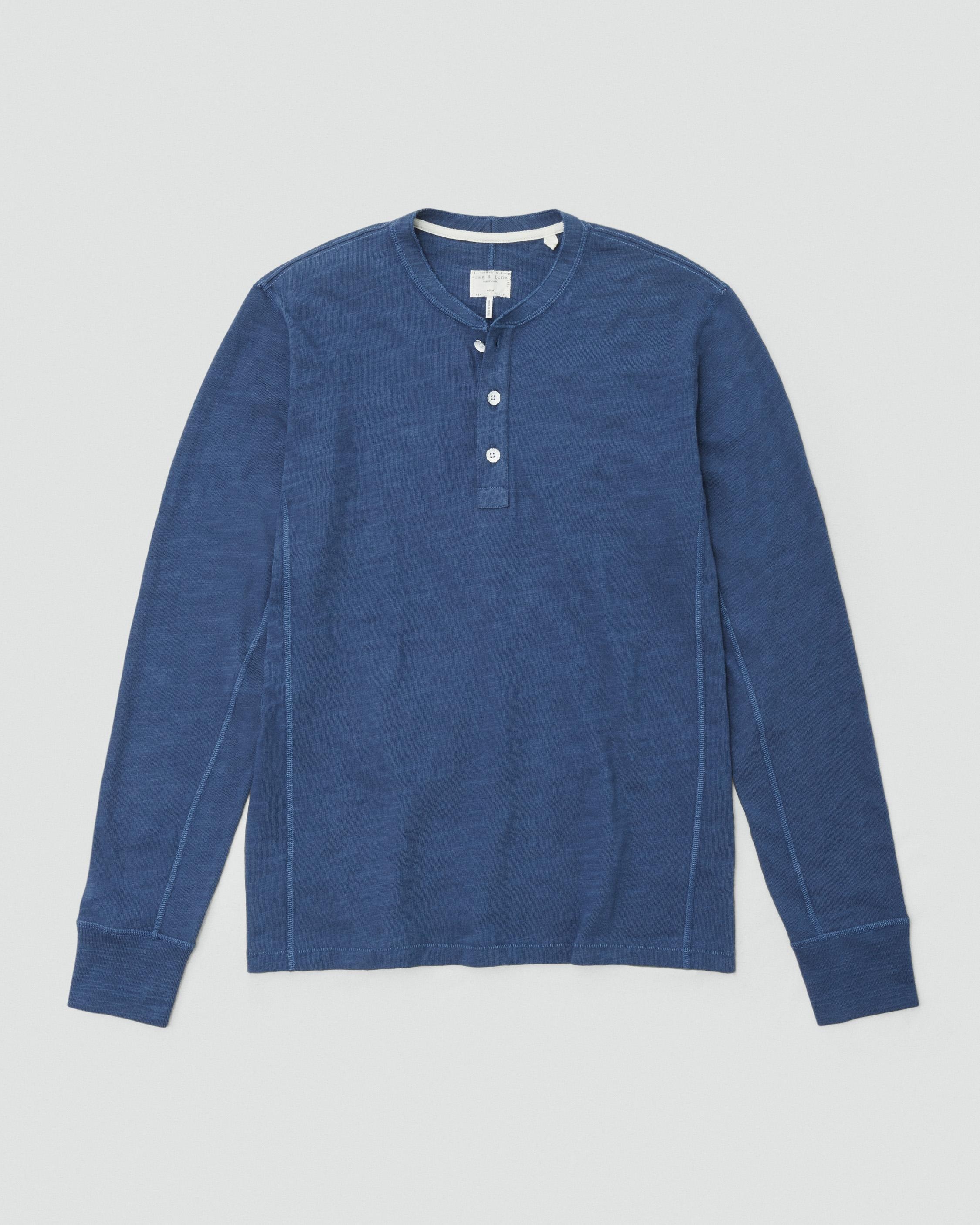 The Essential Flame Henley. Made from Tangϋis Cotton, this heritage fabric is organic and fair trade, with extra-long fibers to make it super-soft and durable. This is the henley you’ll reach for over and over. Size & Fit Classic fit Size Medium: Center back length 26 1/2", chest 40", sweep 40", sleeve length 35 1/4" Model is 6'2.5" wearing a size medium Features & Details 100% Cotton Machine wash cold with like colors, do not use bleach, tumble dry low RB embroidery on sideseam tab and grosgrain tape on back neck Imported Product ID: MBC23HT037CA37