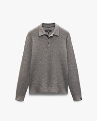 Next-level texture. This long-sleeve sweater combines the comfort of knitwear with the polish of a polo shirt. It's crafted from luxuriously soft wool and cashmere in a unique range of stitches that create tonal dimension. Fully-fashioned sleeves, fine ribbed trims, and a trim yet comfortable fit complete its elevated look. Size & Fit • Trim fit • Fits true to size • Size medium: Back length 26", chest 40", sweep 39", sleeve length 33.75" • Model is 6'2" wearing size medium Features & Details • 87% wool, 13% cashmere • Dry clean only • Suede rag & bone logo tab at sleeve cuff • Metal buttons at front placket • Imported Product ID: RH2625F6MWH