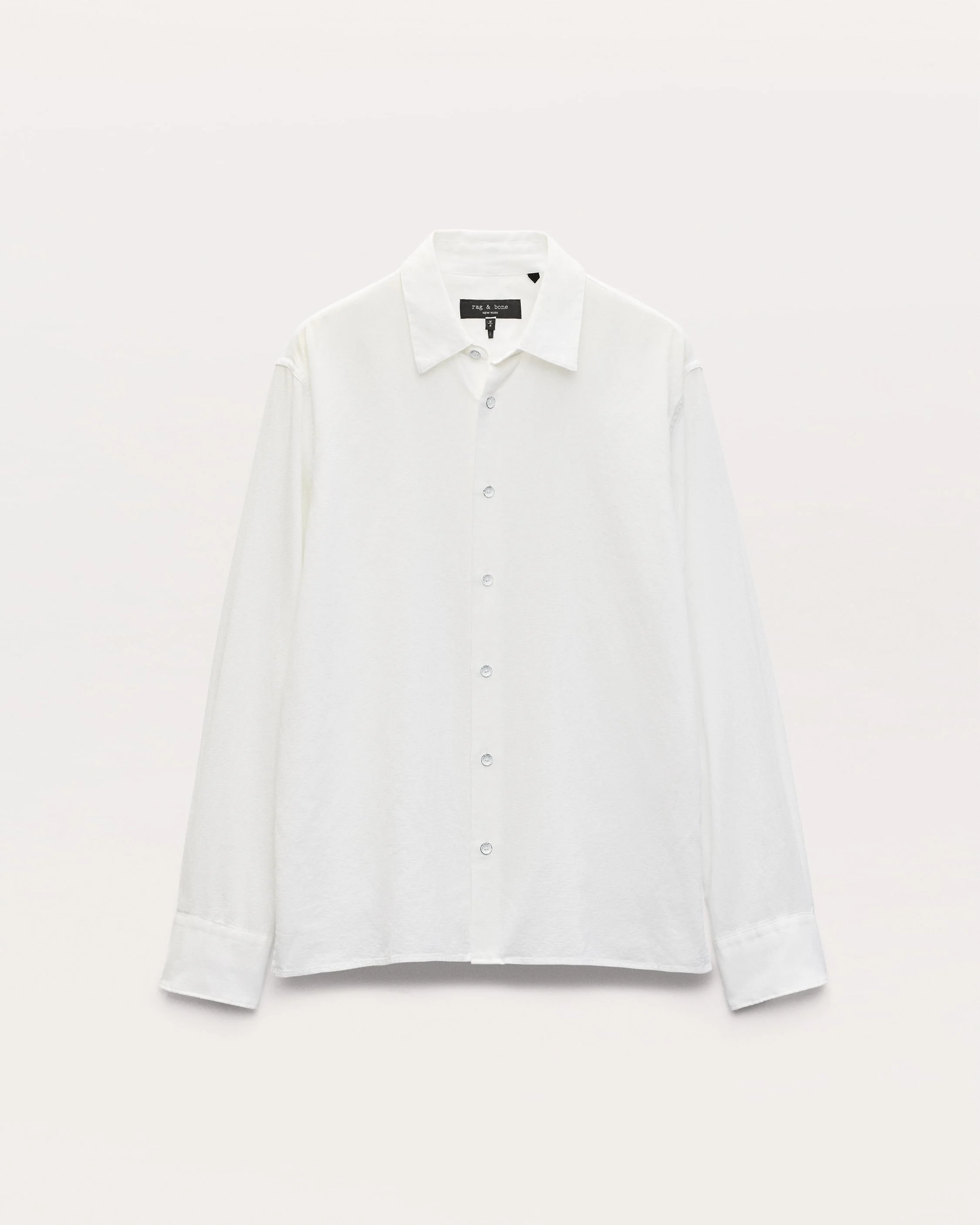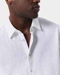 Our favorite button-up shirt. Cut with a classic, laid-back fit and straight hem perfect for any outfit. Made for warm off-duty days, this casual long-sleeve version is crafted from lightweight canvas with a subtle yet dimensional natural texture. It's garment-dyed to create a beautiful depth of color. Size & Fit • Classic fit • Fits true to size • Size Medium: Back length 28.25", chest 46", sleeve length 34.75" • Model is 6'3" wearing size medium Features & Details • 63% cotton, 37% lyocell • Machine wash cold on delicate & lay flat to dry or dry clean • Do not twist or wring • Distressed buttons at center front and cuff with a bone button at the sleeve placket • Button closure • Imported Product ID: MBW25PA018PCML
