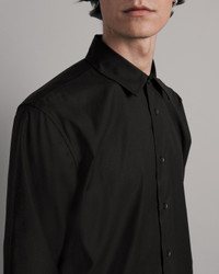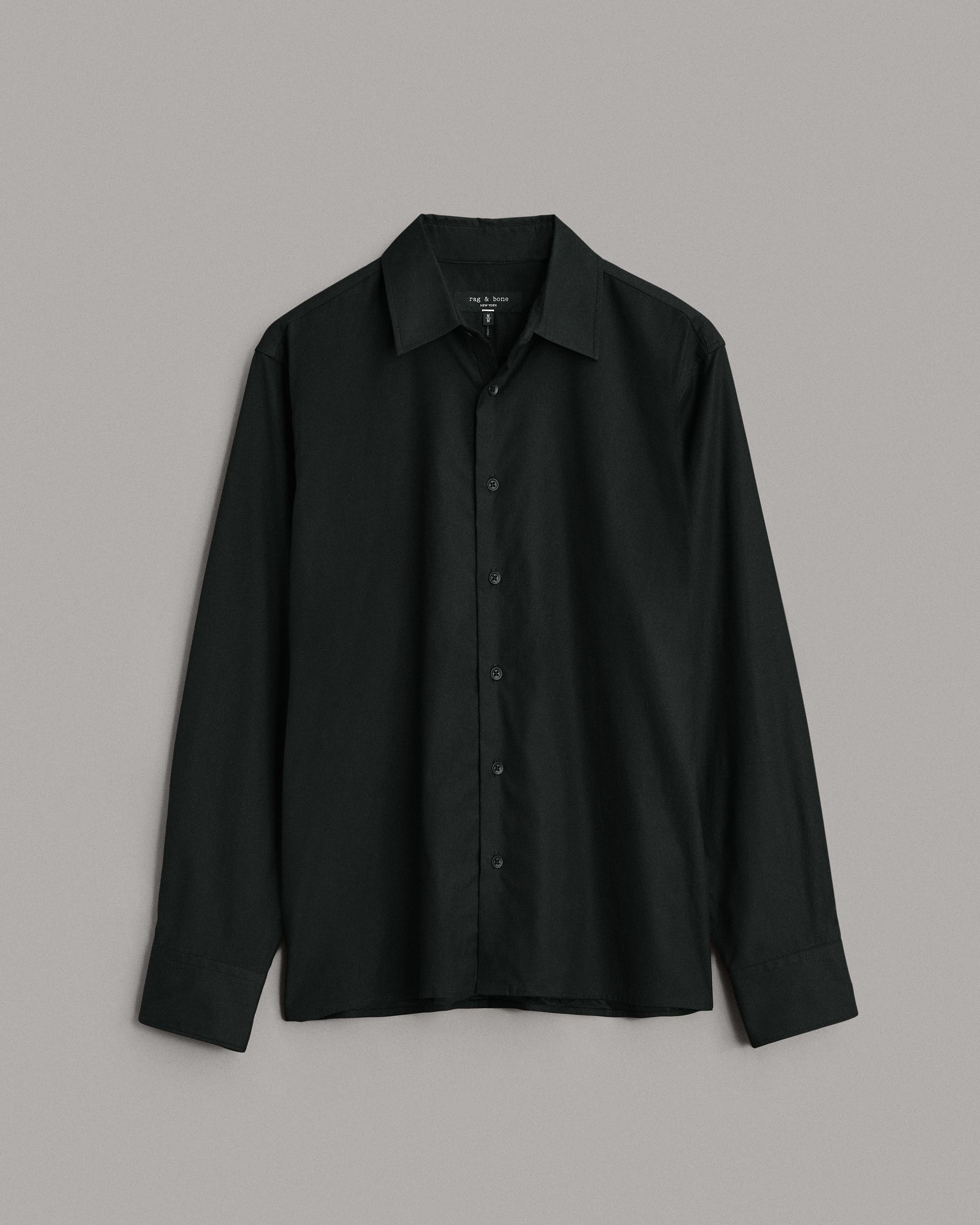 Our Dalton Shirt is made from a lightweight cupro and cotton blend, an easy and silky material. This relaxed fit style features concealed collar buttons for a stealthily minimal look with a straight hem. Size & Fit Oversized Size Medium : Center back length seam 28 1/4", chest 46", sweep 44 3/4", sleeve length 35 1/2" Model is 6'2" wearing a size medium Features & Details 49% Cupro 48% Cotton, 3% Elastane Hand wash or dry clean only Cupro cotton blend fabric, easy and silky material, garment has a straight hem, side slit detail, Oversized fit 20l metal buttons at center front, cuffs and 1 extra, quality guaranteed label, bone buttons at sleeve plackets, black grosgrain locker loop at center back neck Black tape at center front under buttons and at sleeve plackets to hold buttons in place Imported Product ID: MBW22HA394SJML