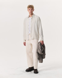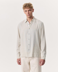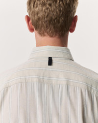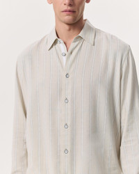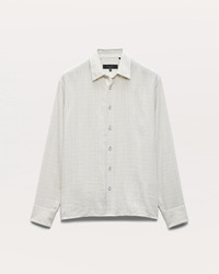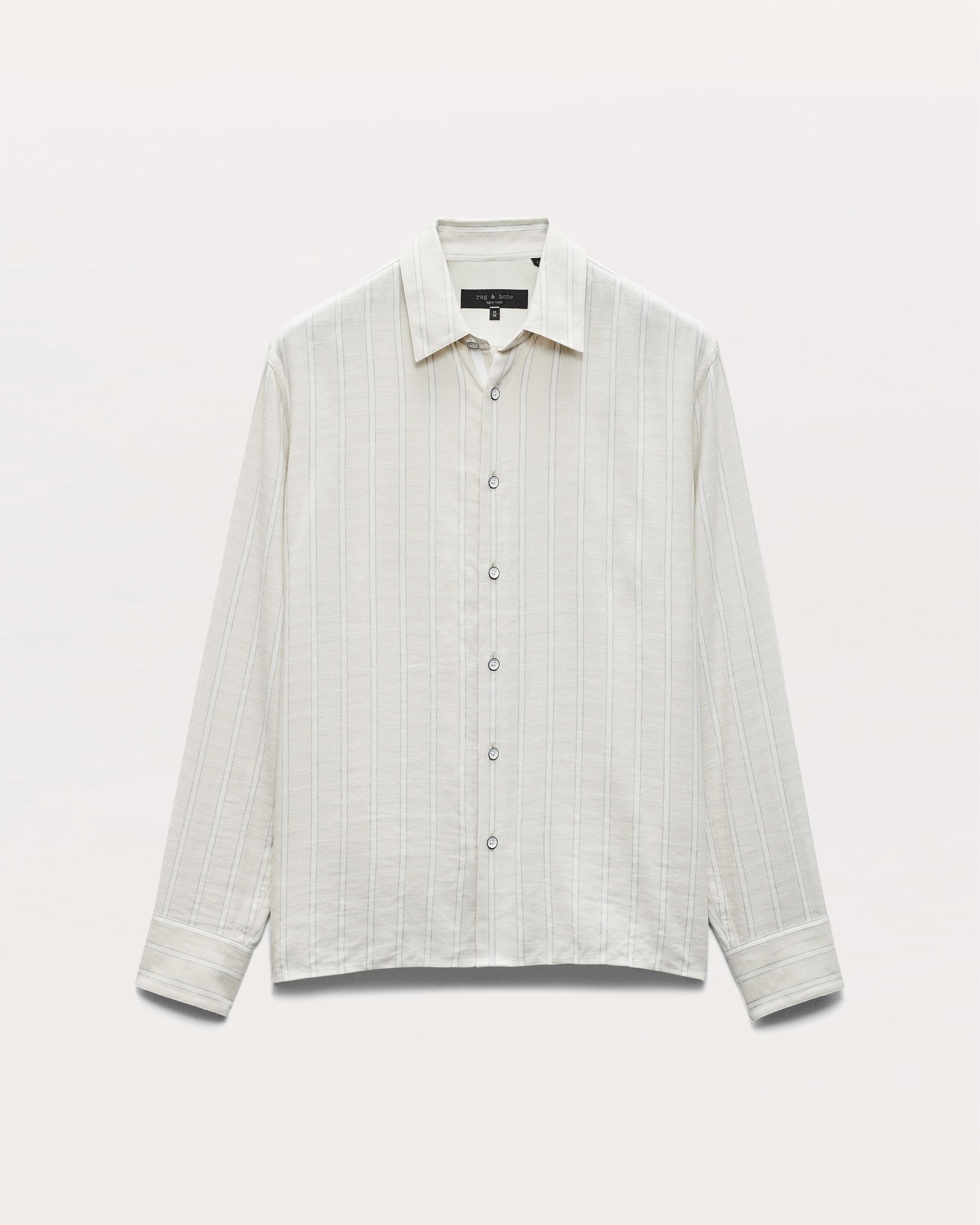 Look closely. This is no ordinary pattern. What seems like a vertical striped shirt is actually a unique twist on plaid achieved by creating horizontal stripes with subtle, dimensional dobby stitches. Size & Fit Classic fit Size Medium: Back length 28 1/4", chest 46", sweep 44 3/4", sleeve length 35 1/4" Model is 6'0.5" wearing size medium Features & Details 71% Rayon, 29% Linen Machine wash cold with like colors, non-chlorine bleach if need, tumble dry low, cool iron if need Buttons at center front and cuffs, faux bone button at sleeve placket Center back locker loop, embroidered rb logo Front button closure Imported Product ID: MBW25SA031RLML