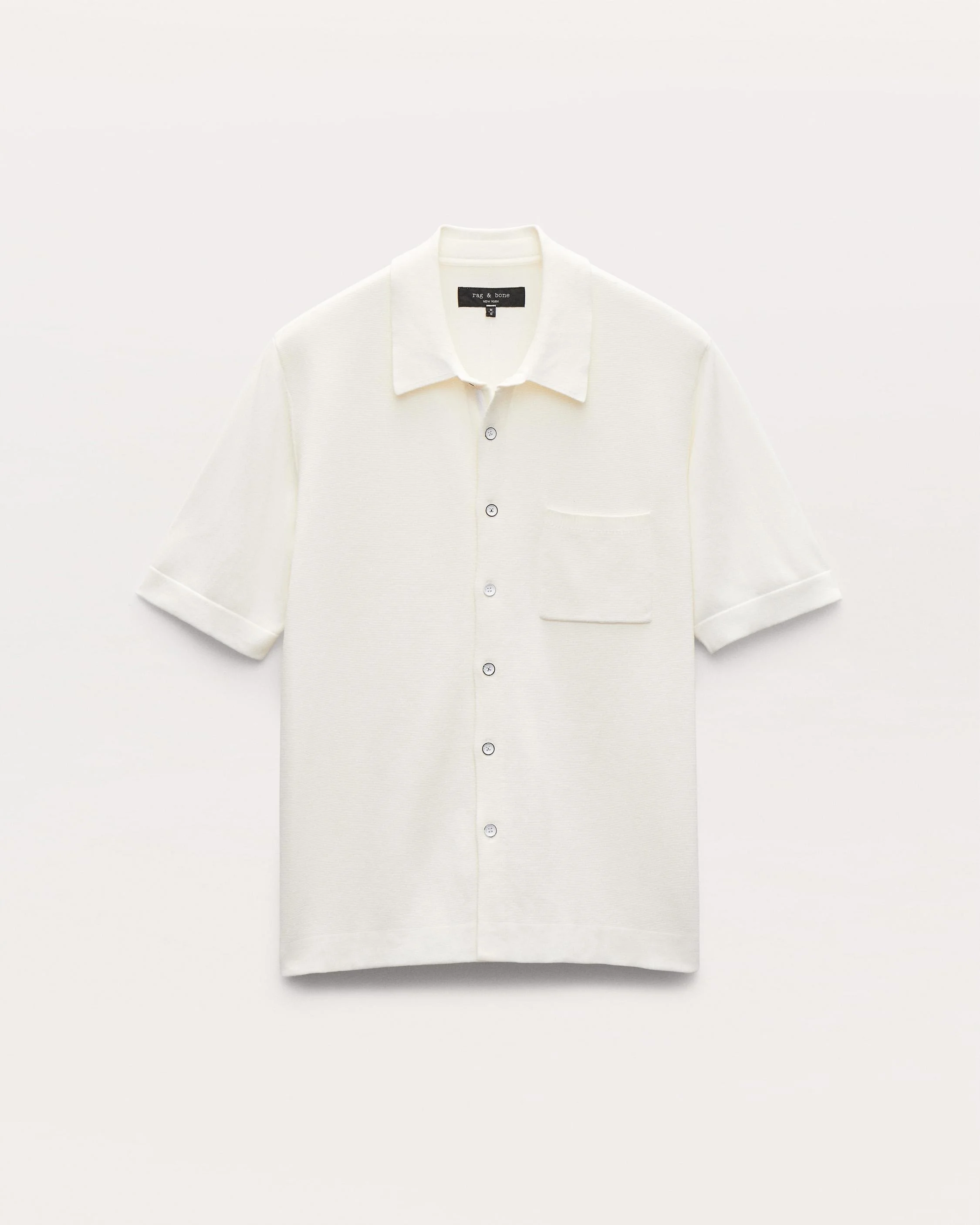 Our favorite button-up shirt. Crafted with a classic, laid-back fit and straight hem perfect for any outfit. This short-sleeve version is knit from a lightweight cotton blend with a refined stitch, giving it the soft hand and polished look of a sweater. Wear the fully-fashioned style with casual shorts during the day and clean denim on nights out. Size & Fit • Classic fit • Fits true to size • Size Medium: back length 26" | chest 41.25" | sweep 41.5" | sleeve length 19.25" • Model is 6'3" wearing size medium Features & Details • 66% cotton, 34% polyamide • Metal buttons at center placket, woven RB logo tab at sleeve cuff • Button closure • Dry clean only • Imported Product ID: MBS25P038LN38