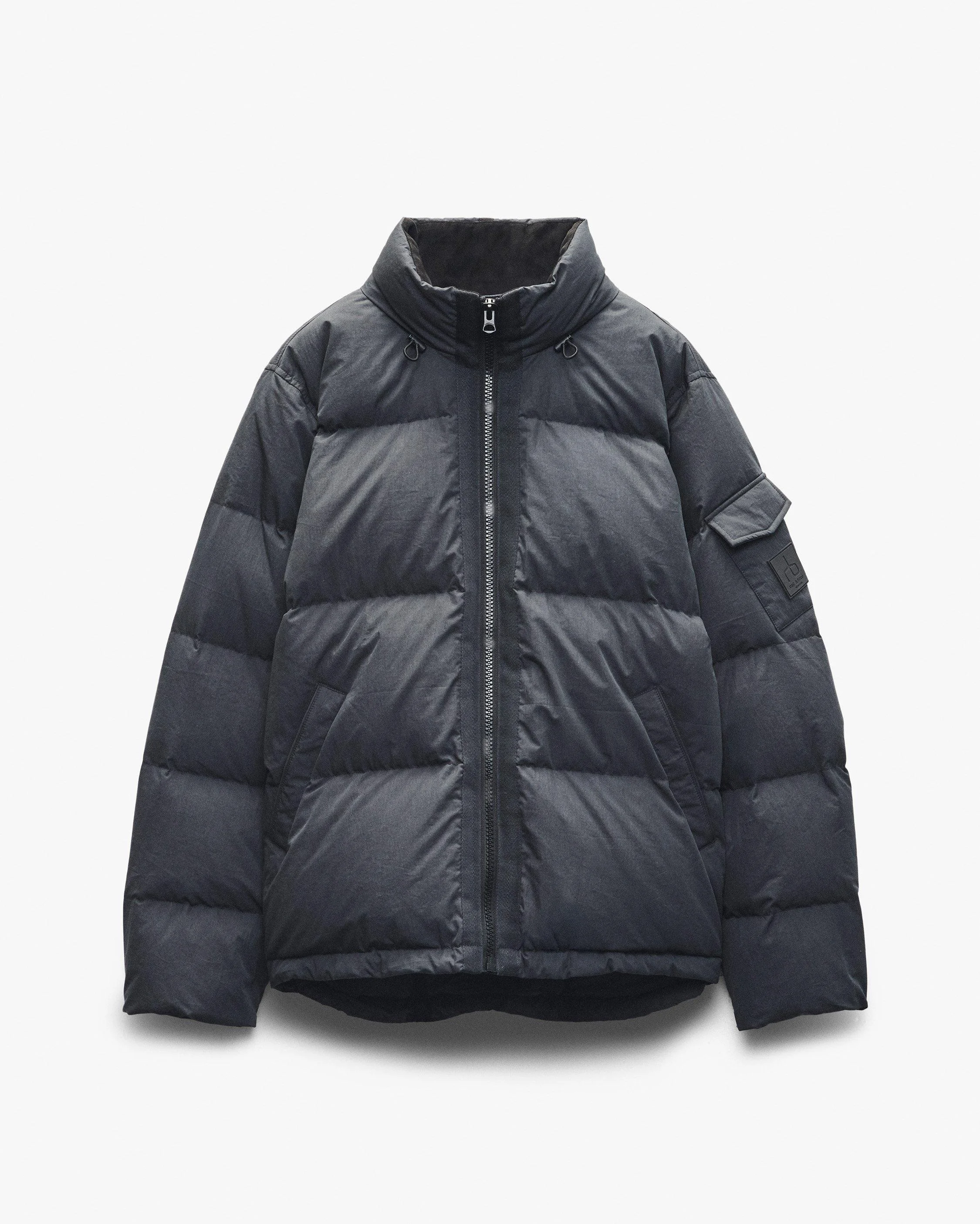 Built for the cold. Made for whatever weather comes your way, this insulated jacket combines a durable cotton blend and down fill with storm-ready features like a stowable hood and hidden-snap pockets. Drawcords at the hem and funnel neck let you fine-tune the fit, while the custom lining and subtle signature details throughout make it unmistakably ours. Size & Fit • Fits true to size • Size medium: Body length 28.75", chest 52", sleeve length 36.5" • Model is 6'2" wearing size medium Features & Details • Body: 65% cotton, 35% polyamide • Lining: 100% polyester • Fully lined in custom lining • Machine wash cold on delicate & lay flat to dry or dry clean • Full-zip front • Stowable hood with exposed snap at center back neck when stowed • Bungee adjusters at hood and hem • Silicone logo patch at left sleeve • Two waist snapped pockets and one snapped internal pocket • Imported Product ID: RV7925F0MNY