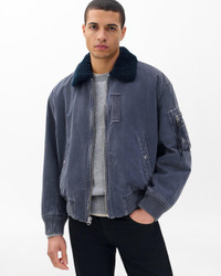 Take to the skies. This fresh twist on the iconic B-15 bomber features details that draw from the U.S. Air Force's original 1940s standard-issue jackets, like a sherpa collar and ribbed trims. Our version is cut from Authentic Rigid, a structured denim designed to break in, whisker, and fade over years of wear. In Infuse Graphite Blue, a custom-developed dark grey-indigo wash. Infuse is our innovative new wash technique that delivers deep, multilayered colors through a complex overdyeing and finishing process. Size & Fit • Fits true to size • Size Medium: Back length 26.25", chest 51.5", sleeve length 36" • Model is 6'2" wearing size medium Features & Details • 100% cotton • Machine wash cold inside out & tumble dry low • Exposed center front zipper • Snaps at pockets • Bomber key ring • Side entry waist pockets & sleeve pocket • Zipper and button closure • Imported Product ID: RV3625F0MDN