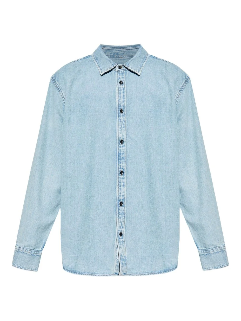 denim shirt Highlights - Powder blue - Front button fastening - Spread collar - Long sleeves - Straight hem Imported Composition Cotton 60%, Lyocell 40% Washing instructions Read Manufacturer Guidelines