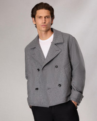 Structured woolen cloth sourced from a renowned Italian mill and a short, boxy profile define this modern take on the iconic peacoat. Size & Fit Classic fit Size Medium: Back length 26 1/2", Chest 51", Sleeve length 36" Model is 6'2.5" wearing a size medium Features & Details 80% Wool 20% Polyamide Lining: 51% Viscose 49% Polyester Fill: 100% Polyester Dry clean only, cool iron if needed Four buttons at center front with leather button backs, buttons at top lapel and interior, snaps at cuffs, internal locker loop Bellandi mill label, leather branding patch Welt pocket Imported Product ID: MBW24H2002OLML