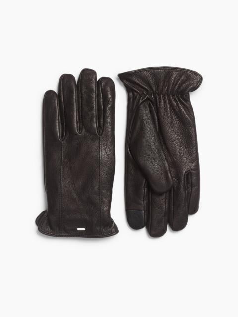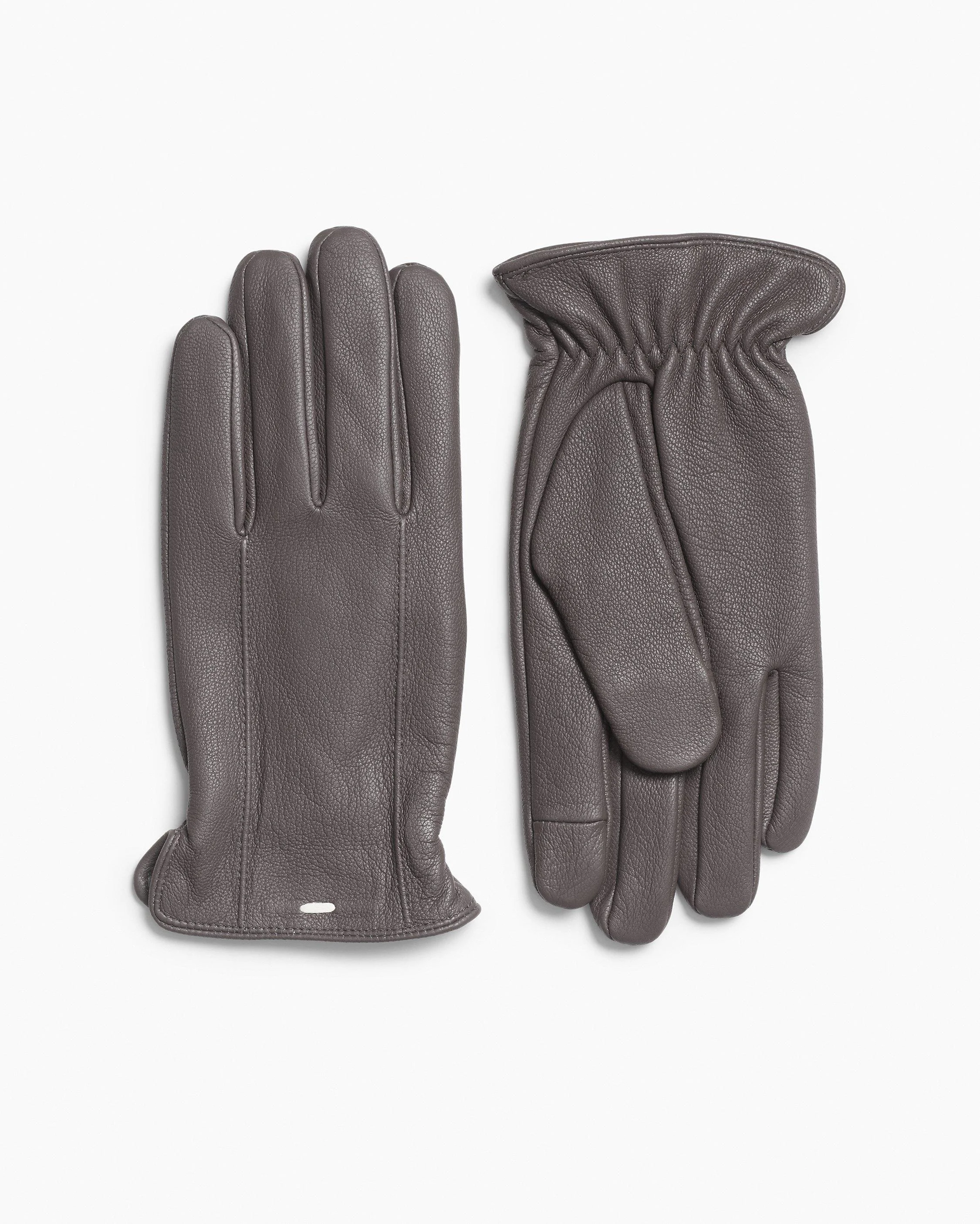 Elevated cold-weather classics. These refined gloves are luxuriously crafted from soft, full-grain deerskin and are lined with cashmere for added warmth. They're cinched at the wrists to ensure a perfect fit and help keep out the cold. Finished with our signature leather bar tack details, they also feature screen-friendly index and thumb fingers for easy phone use. Size & Fit • S: length 9.25", width 3.75" • M: length 9.5", width 4" • L: length 10", width 4.5" Features & Details • Outer: 100% deer leather • Lining: 100% cashmere • Professional leather clean only • Fully lined • Cinched and vented cuffs • Threaded bar tack details at cuffs • Touchscreen-compatible index and thumb fingertips • Imported Product ID: RY1A25F876L
