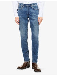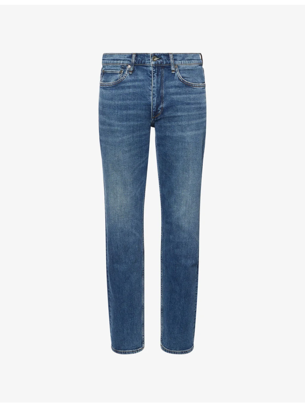 PRODUCT DETAILS - rag & bone stretch-denim jeans - 99% cotton, 1% elastane - Exposed button and concealed zip-fly fastening at front - Slim fit, mid-rise, tapered leg, belt loops, five pockets, faded wash and whiskering - Machine wash at 30°C - Size UK 32: rise 11in / 29cm, inside leg 31in / 79cm, leg opening 12in / 31cm - Model is 6ft 2in/1.88m and wears a size UK 32 - Lightweight, stretchy Ref: R04497893
