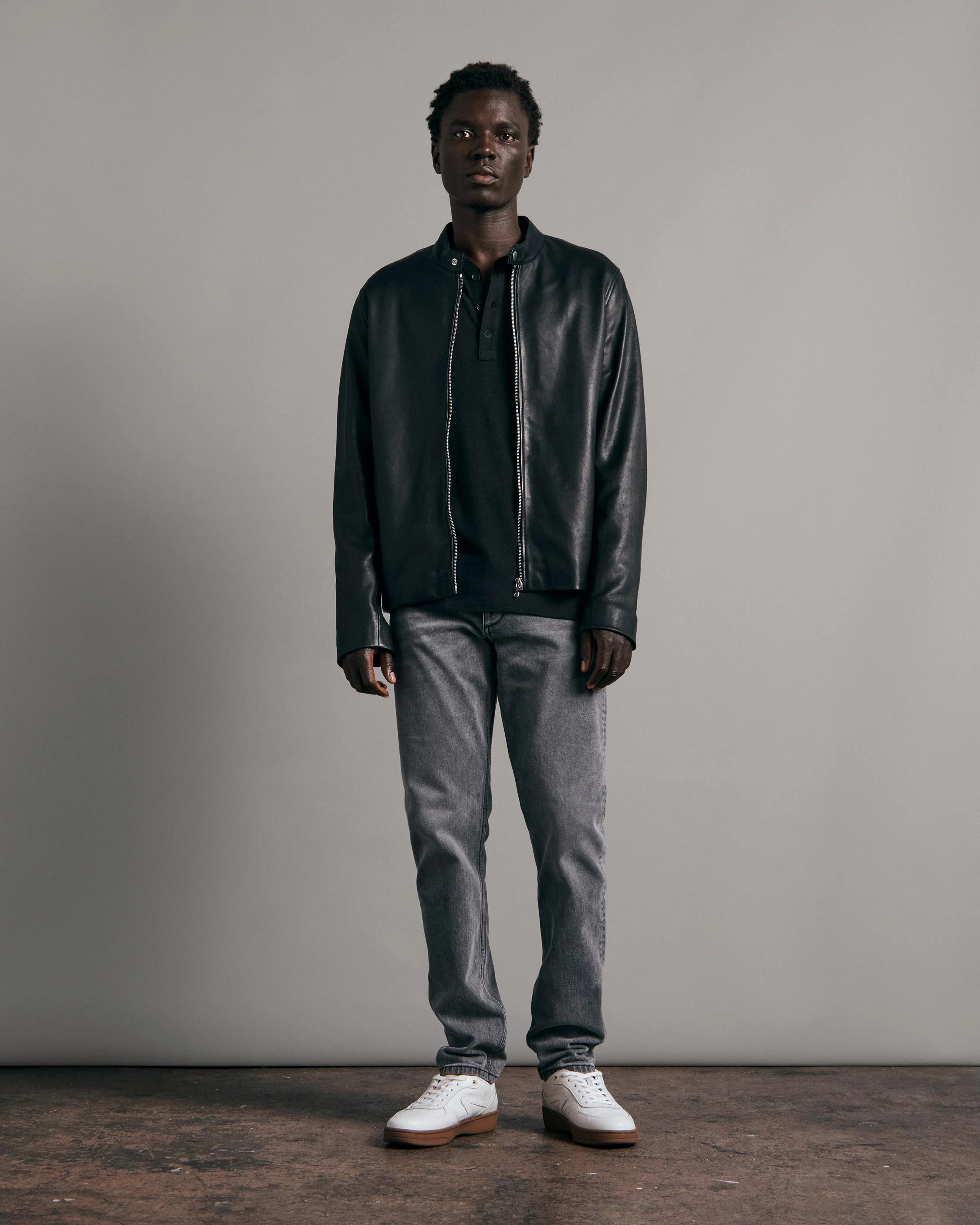 Our most popular fit. Mid rise, slim through the hip and thigh with a narrow leg opening. Can't go wrong. Cut from comfort stretch denim, the Greyson wash is super versatile with slight 3D whiskering done by hand, and features classic rivets and our signature branded hardware based on the first ever rag & bone button. Size & Fit Slim fit Fits true to size 11" rise, 32" inseam, 13.5" leg opening Model is 6'0" wearing a size 32 Features & Details 14.5 oz comfort stretch denim in a black wash 95.4% Cotton 4% Polyester 1.5% Elastane Machine wash Heritage front button closure Imported Product ID: MED22S1223I6GR