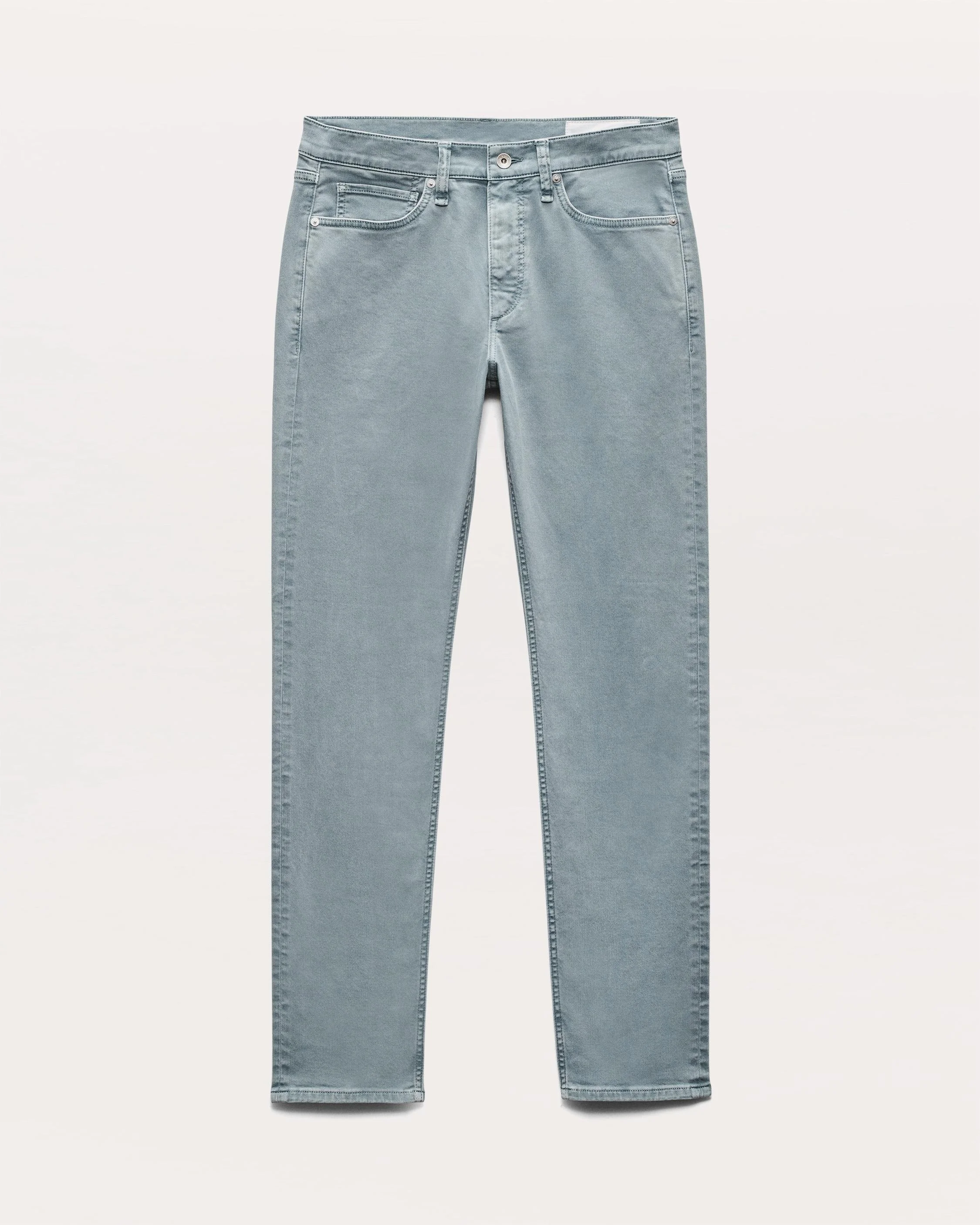 Fit 2. Our most popular fit. Mid-rise, slim through the hip and thigh, with a narrow leg opening. Crafted from Aero Stretch, a lightweight, modern denim with superior stretch and retention. In Stone Blue, a light, pale blue wash. Size & Fit Mid-rise, slim fit 11" rise, 32" inseam, 13 1/2" leg opening Model is 6'2" Features & Details 91% Cotton, 8% Polyester, 1% Elastane Aero Stretch Denim in Stone Blue, a light, pale blue wash. Machine wash cold with like colors, color may bleed, tumble dry low. Zip fly with button closure Five-pocket silhouette Imported Product ID: MED25S1223AELD
