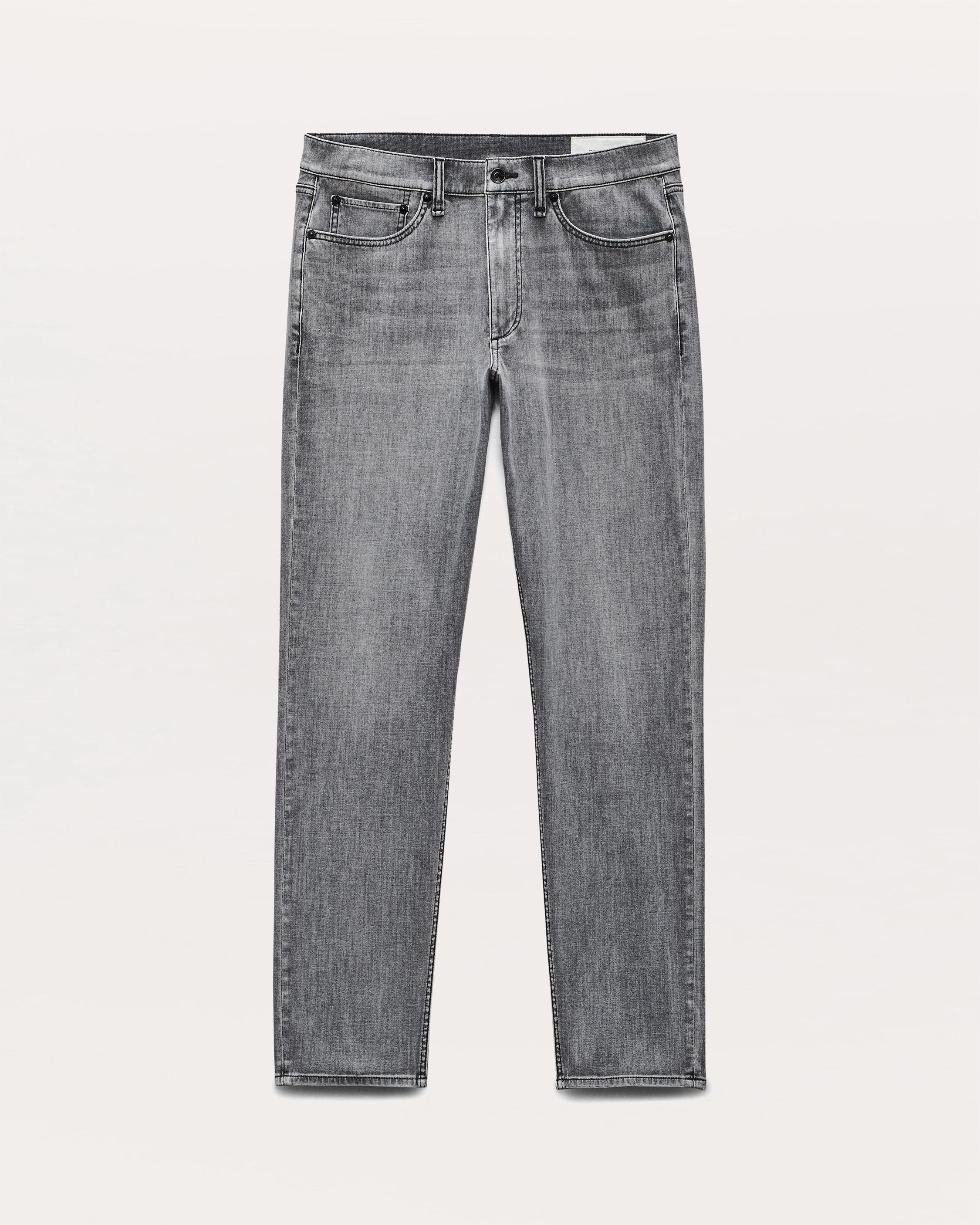 Fit 2. Our most popular fit. Mid-rise, slim through the hip and thigh, with a narrow leg opening. Crafted from rbAIRFLEX, our breathable new stretch denim that's moisture-wicking, light as air, and engineered for a life in motion. In Christopher, a light-medium washed gray. Size & Fit Mid-rise slim fit 11" rise, 32" inseam, 13 1/2" leg opening Model is 6'1" wearing size 31 Features & Details 51% Cotton, 25% Polyester, 12% Lyocell, 8% Acetate, 4% Spandex rbAIRFLEX Denim in Black Machine wash cold with like colors, color may bleed, tumble dry low Black shank at center front, black rivets Zip fly with button closure Five-pocket silhouette Imported Product ID: MED25S1223TDCH