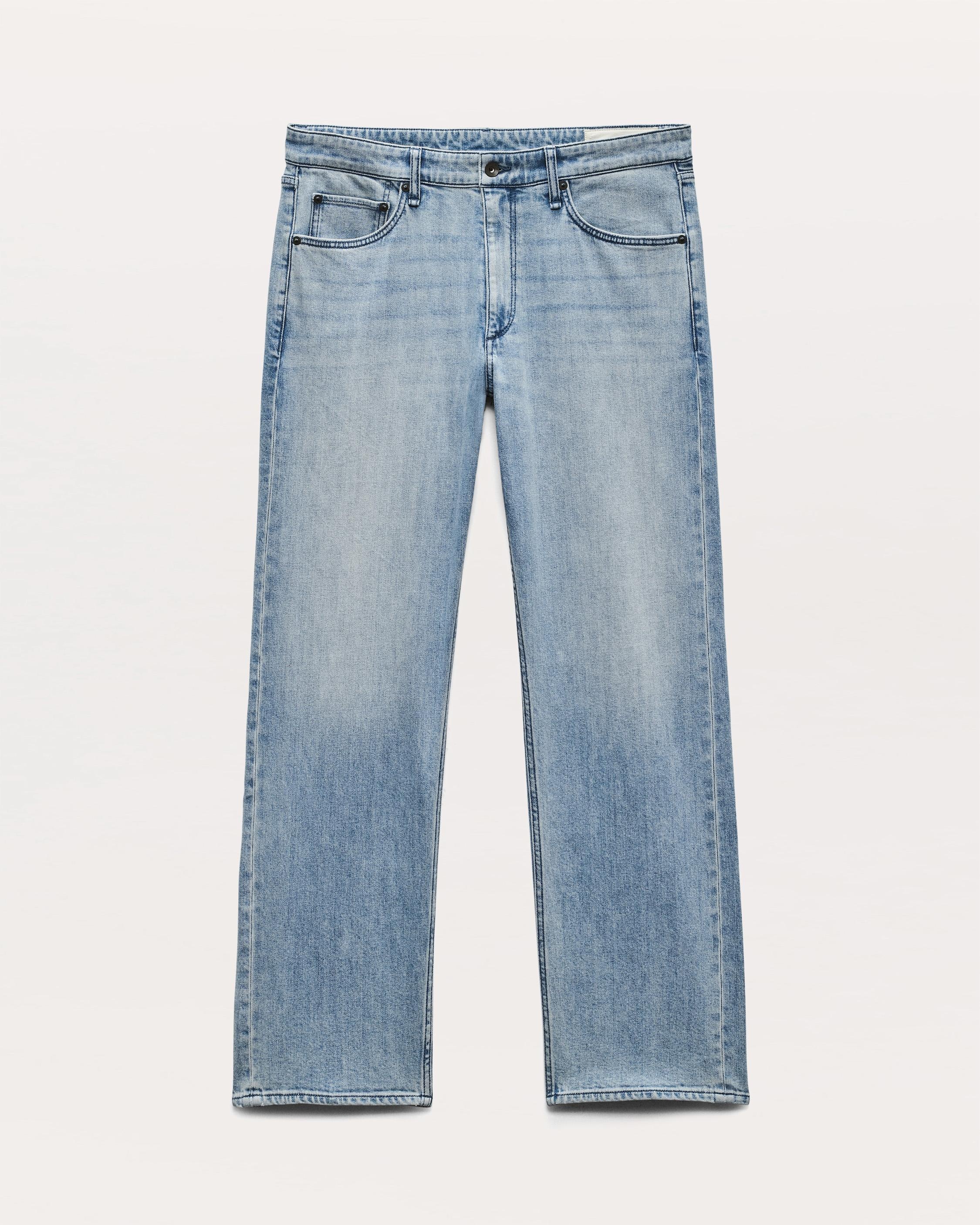 Fit 4. Our classic fit. Mid-rise with a straight leg through the hip and thigh and slight distressing at the hem. Crafted from Authentic Stretch, a selvedge-inspired denim with an optimal touch of shape-holding stretch. In Fletcher, a medium indigo wash. Size & Fit Mid-rise relaxed fit 11 1/2" rise, 32" inseam, 18" leg opening Model is 6'1" wearing size 31 Features & Details 99% Cotton, 1% Lycra Authentic Stretch Denim in Indigo Machine wash cold with like colors, color may bleed, tumble dry low Matte inox shank at center front, matte inox rivets Zip fly with button closure Five-pocket silhouette Imported Product ID: MED25S1247ASFL
