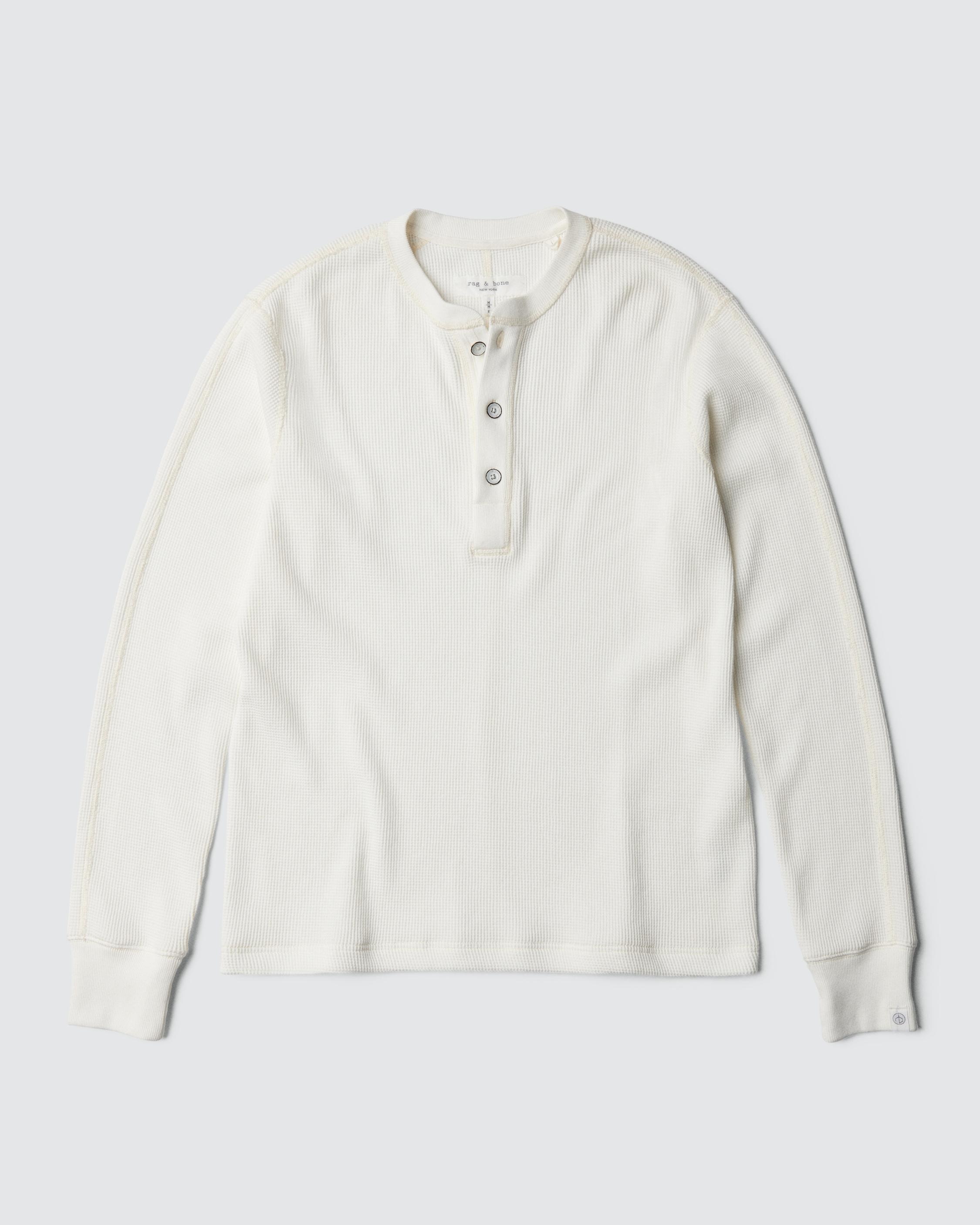 The building blocks. The foundational pieces that breathe life into your closet. The one’s you’ll reach for every morning, the ones that get you out the door. They’ll become familiar, they’ll become favorites—forever. These are the Icons.The Waffle Henley. '90s workwear for the 21st Century. Ours is crafted in premium cotton, with long sleeves and signature fish-eye buttons. Size & Fit Long sleeve tailored henley Size Medium: Body length 26 3/8", chest 41 1/2", Sweep 41 1/2", sleeve length 35" Model is 6'1" wearing a size medium Features & Details 100% Cotton Machine wash cold inside out gentle cycle with like colors, do not bleach, tumble dry low. Cool iron if needed. Buttons at center front Imported Product ID: MBC23FT029GD29