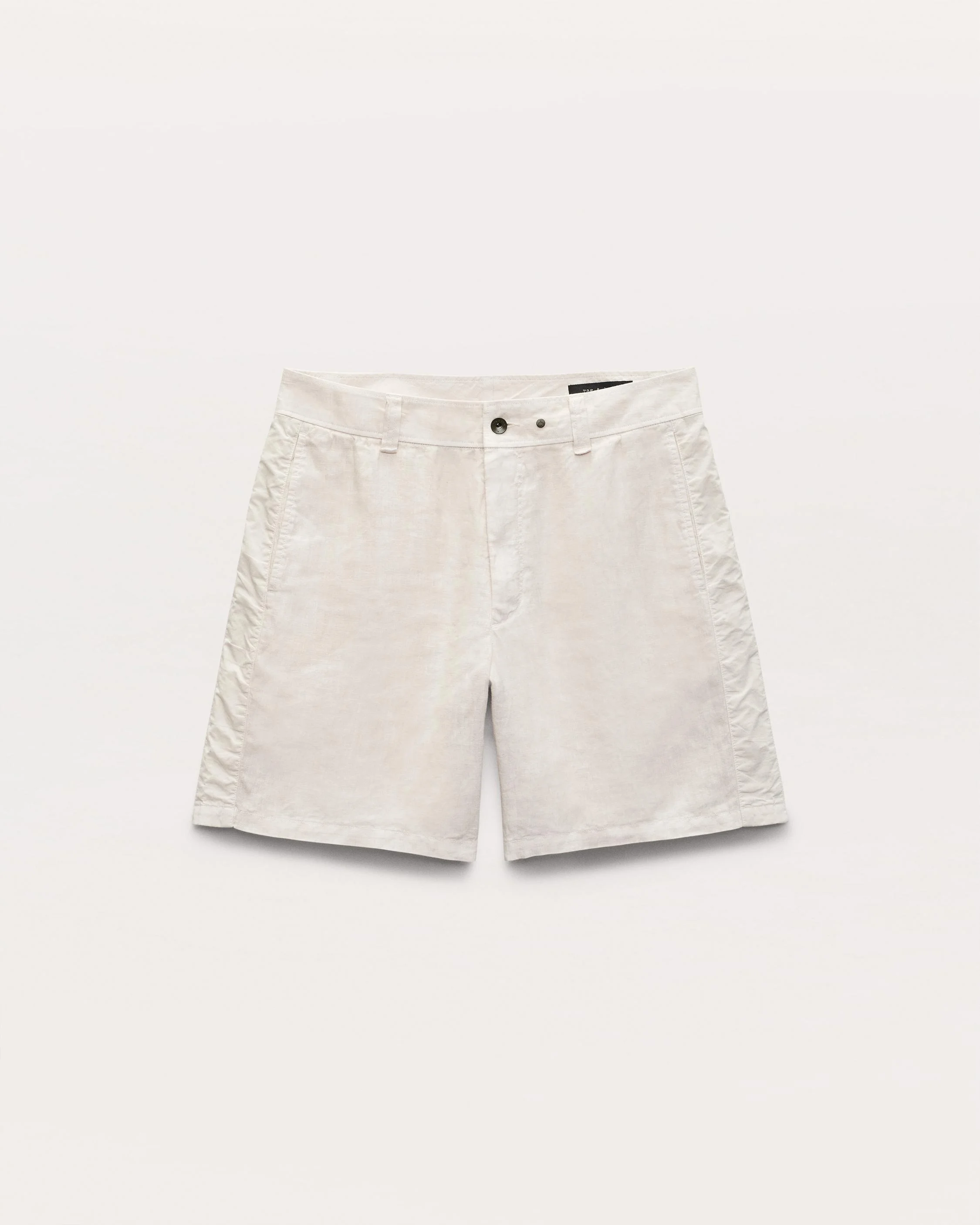 Introducing our new Haydon Shorts. Tailored for an 8" insteam with a straight leg that's slightly wide, but still perfectly balanced and approachable. Made for the season's warmest days, this pair is crafted from airy, garment-dyed linen with the subtle textural shift of tonal panels at the sides. They're an essential component of any well-rounded wardrobe. Size & Fit • Classic fit • Size 32: 11.5" rise | 8" inseam | 24.5" leg opening • Model is 6'3" wearing size 31 Features & Details • 100% linen • Zip fly with a button closure and keeper button • Slanted front slit pockets and back slit pockets • Machine wash cold & tumble dry low • Imported Product ID: MBW25P9005LIML