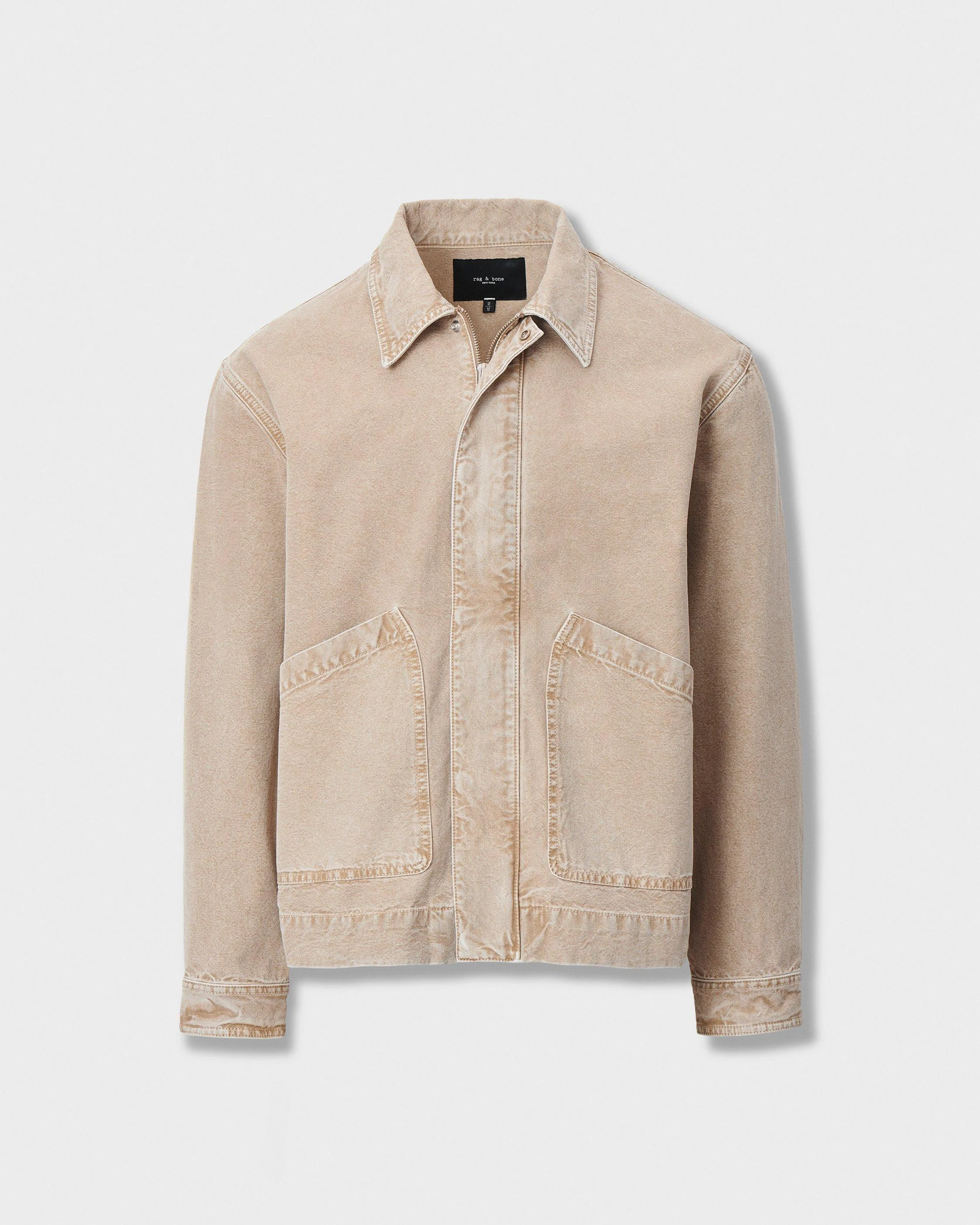 Style that works. Taking its cues from classic workwear, this full-zip jacket is crafted from cotton canvas with a unique wash for added dimension and texture. Complete with utilitarian pockets, it looks and feels like a well-worn piece you've owned your entire life. Size & Fit • Fits true to size • Size Medium: Body length 26.5", chest 49.25", sweep 45.5", sleeve length 35" • Model is 6'1" wearing size medium Features & Details • 100% cotton • Zip and snap closure • Matte steel snaps at center front • Leather patch at back • Front patch pockets • Machine wash cold & tumble dry low • Color may transfer • Imported Product ID: RX2126S2KAT