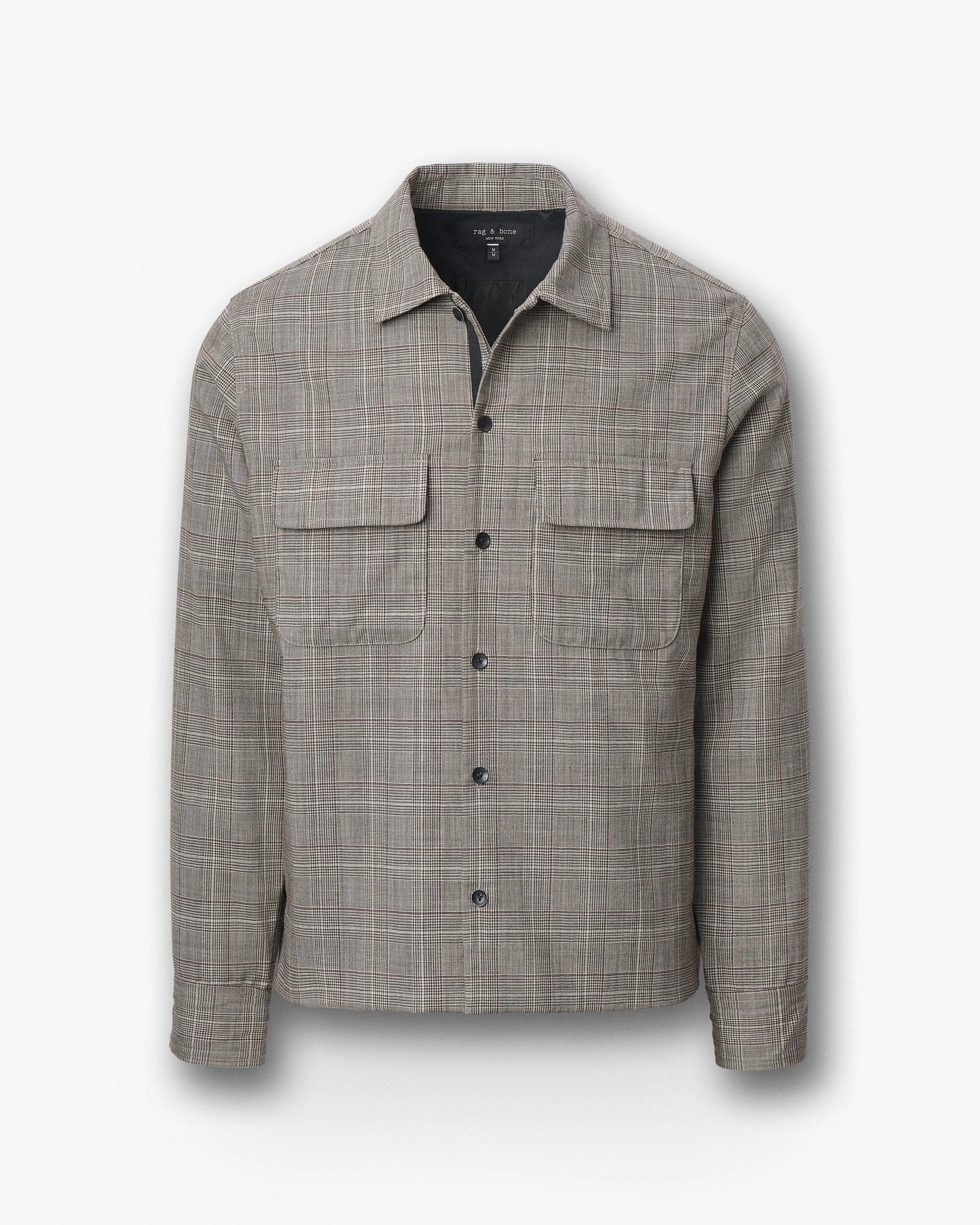 The ultimate hybrid layer. Crafted from fine wool woven with a Glen plaid pattern and sourced from Nova Fides, an Italian mill celebrated for blending heritage, technology, and artisanal craftsmanship. Signature distressed buttons and military-inspired flap pockets nod to classic workwear. Size & Fit • Classic fit • Fits true to size • Size medium: Back length 27", chest 46.5", sweep 45", sleeve length 35.25" • Model is 6'2" wearing size medium Features & Details • Body: 100% wool • Lining: 100% polyester • Custom rb dagger lining • Four-hole button closure • Distressed buttons at front, cuffs, and pocket flaps • Nova Fides mill label • Side entry waist pockets • Dry clean only, delicate process • Imported. Italian materials. Product ID: RV4F25HSMWO