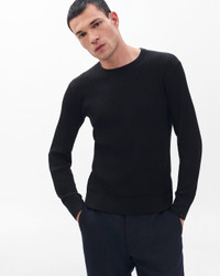 Everyday, elevated. This classic crewneck sweater is knit from a soft blend of fine silk and cotton. Its luxurious ribbed texture pairs just as well with suiting styles as your favorite denim. The epitome of effortless elegance. Size & Fit • Classic fit • Fits true to size • Size medium: Back length 25", chest 37.25", sweep 37", sleeve length 32.5" • Model is 6'2" wearing size medium Features & Details • 58% silk, 42% cotton • Suede logo tab at wearer's left sleeve cuff • Machine wash cold inside out on delicate & lay flat to dry • May also dry clean • Imported Product ID: RH8325H6MSK