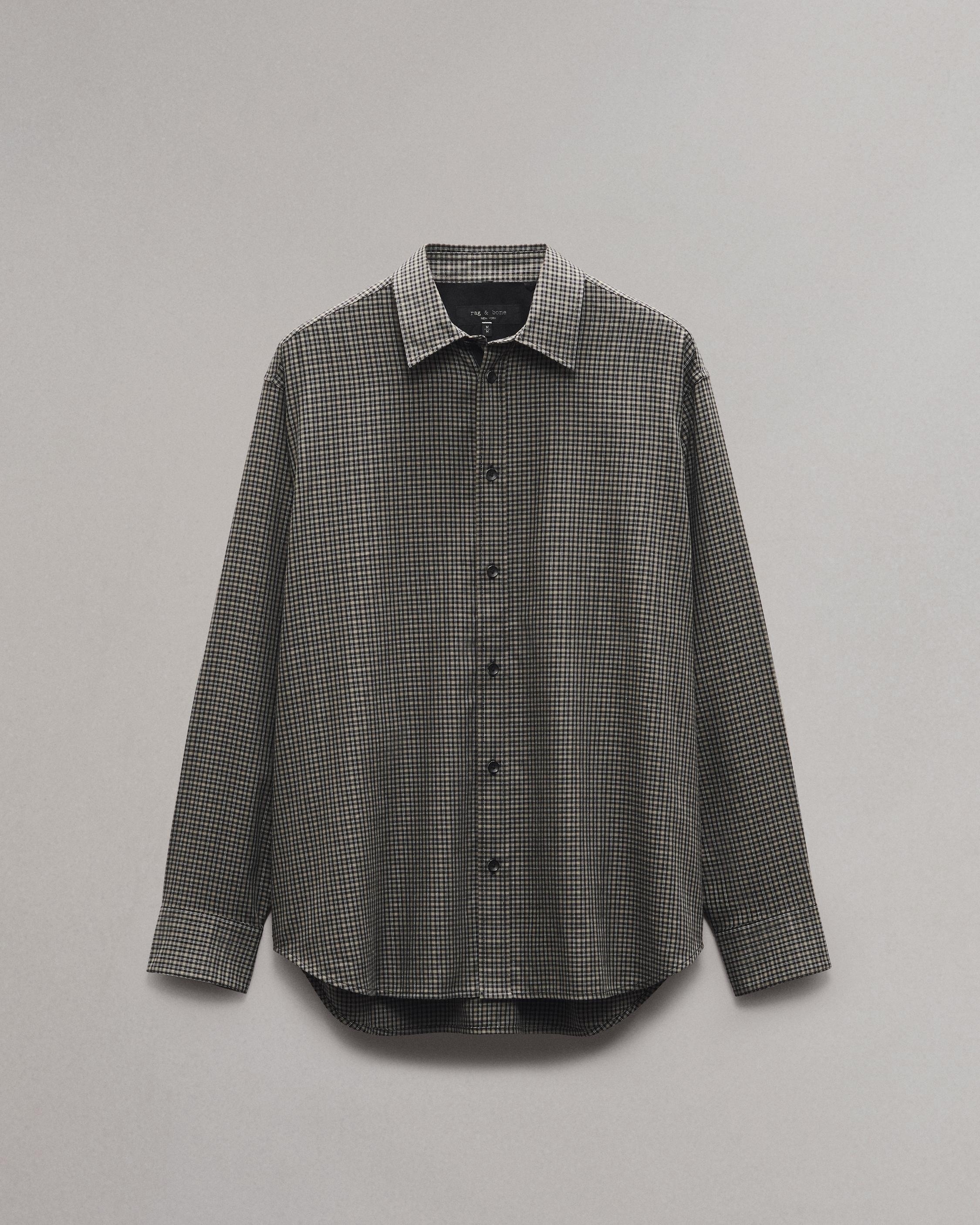This plaid shirt is cut for a relaxed fit from soft cotton flannel woven with viscose, giving it an easy drape. Take your typical size for a looser look, or size down for a closer fit. Size & Fit Relaxed fit Size Medium: Center back length 30 3/4", chest 51 1/2", sweep 51 1/4", sleeve length 35 1/4" Model is 6'2.5" wearing a size medium Features & Details 55% Cotton 45% Viscose Machine wash cold with like colors, non-chlorine bleach if needed, tumble dry low, cool iron if needed Imported Product ID: MBW24HA003GHML