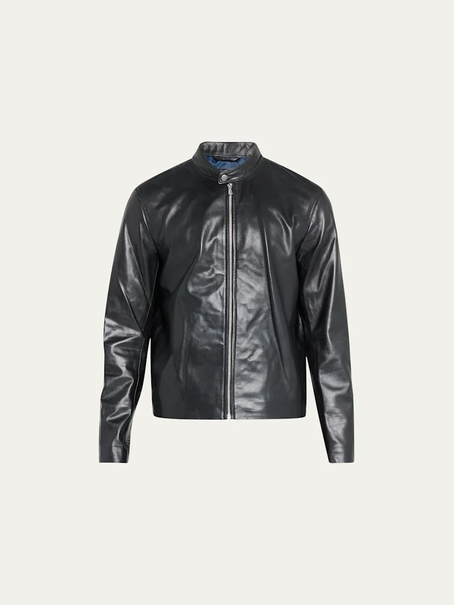 Rag & Bone racer jacket in smooth lambskin leather Mock neckline with spring snap Zip front closure Long sleeves Zip cuffs Imported Model is 6'1"/185cm. Online Inquiries: BGS21_NA1S5| Store Inquiries: #4402067
