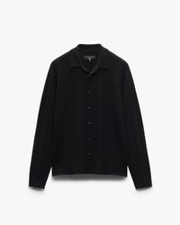 Next-level texture. This button-up shirt combines the comfort of knitwear with the polish of tailoring. It's crafted from luxuriously soft wool and cashmere in a unique range of stitches that create tonal dimension. Fully-fashioned sleeves, fine ribbed trims, and a trim yet comfortable fit complete its elevated look. Size & Fit • Trim fit • Fits true to size • Size medium: Back length 26.5", chest 40.75", sweep 44.25", sleeve length 34.25" • Model is 6'2" wearing size medium Features & Details • 85% wool, 15% cashmere • Dry clean only • Suede rag & bone logo tab at sleeve cuff • Metal buttons at front placket • Imported Product ID: RH2525F6MWH