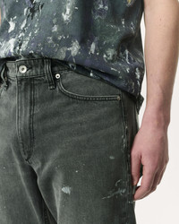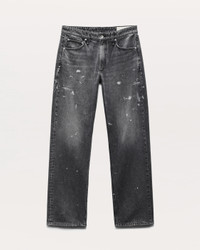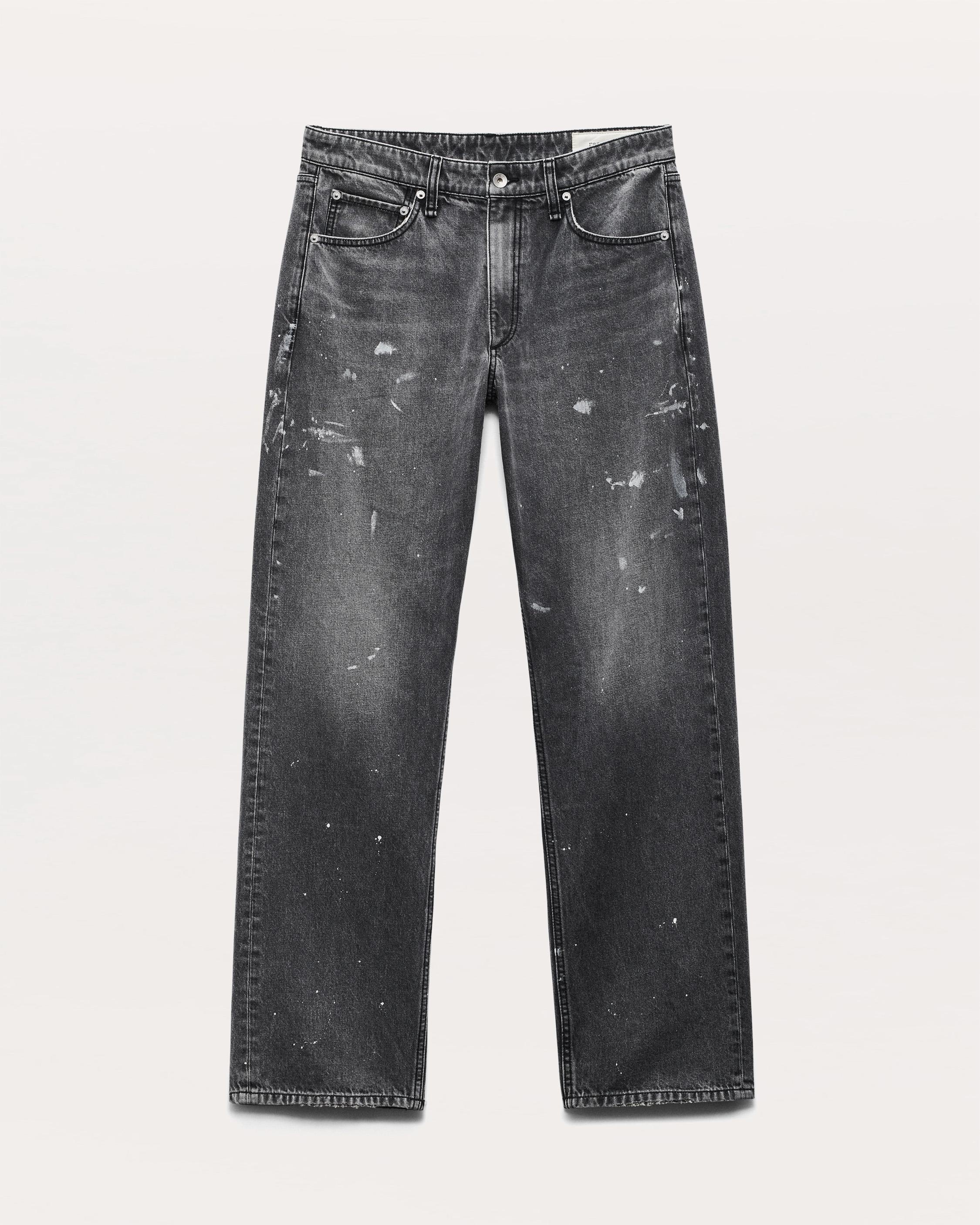 Fit 4. Our classic fit. Mid-rise with a straight leg through the hip and thigh and slight distressing at the hem. Cut from Authentic Rigid, a structured denim designed to break in, whisker, and fade over years of wear. In Painted Charcoal, a washed gray with hand-painted splatter details inspired by the clothes worn by 20th-century artists in the SoHos of New York and London. The artisanal process ensures no two pairs are exactly alike, meaning yours will be unique to you. Size & Fit Mid-rise relaxed fit 11 1/2" rise, 32" inseam, 18" leg opening Model is 6'1" wearing size 31 Features & Details 100% Cotton Authentic Rigid Denim in Painted Charcoal, a washed gray with hand-painted splatter details Machine wash cold with like colors, color may bleed, tumble dry low Zipper fly with matte inox button closure Five-pocket silhouette Imported Product ID: MED25S1247RGPC