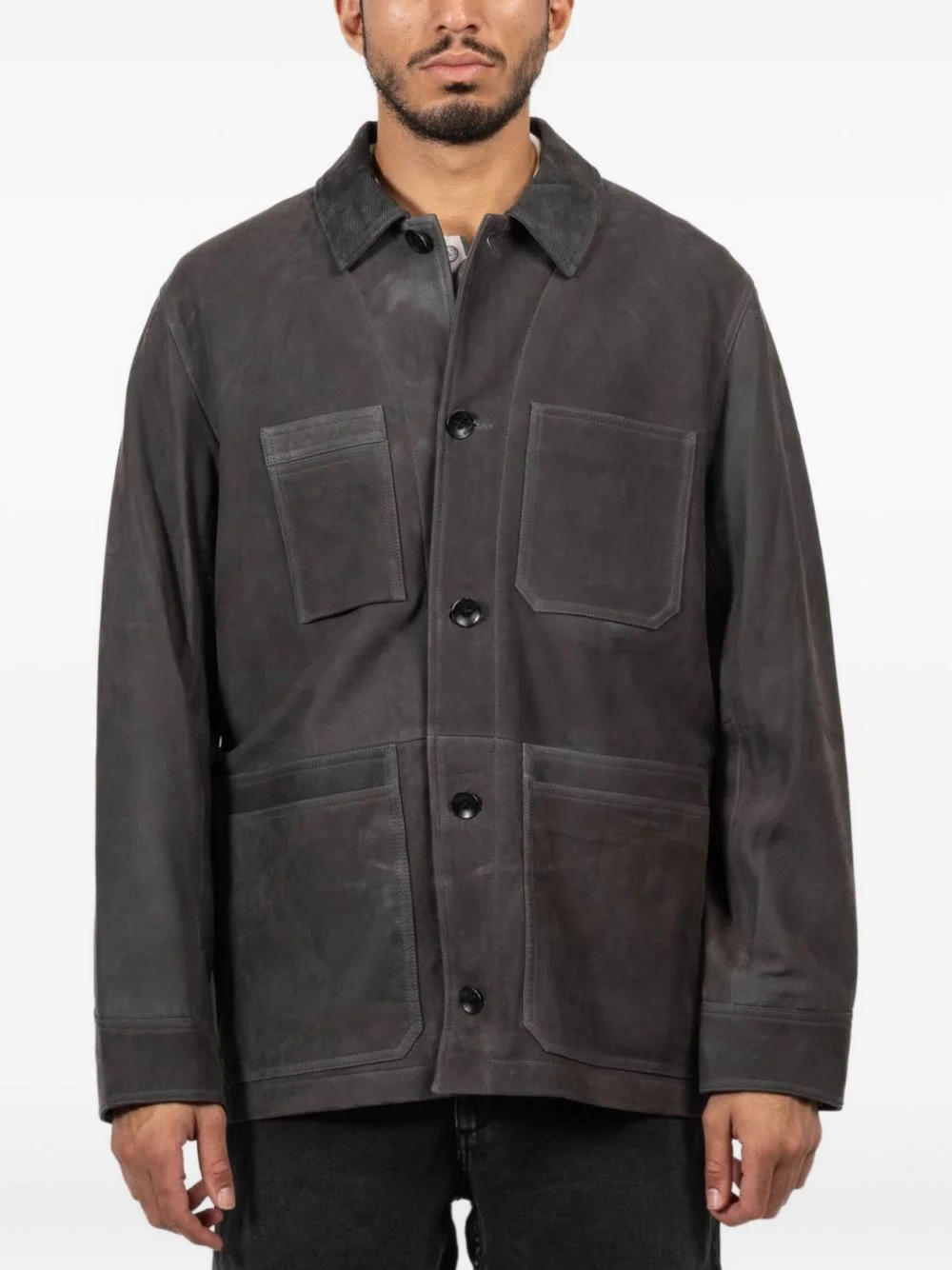 Graham Chore buttoned pocket jacket Highlights - Dark grey - Button fastening - Point collar - Long sleeves - Patch pocket Imported Composition Lambskin 100% Washing instructions Read Manufacturer Guidelines