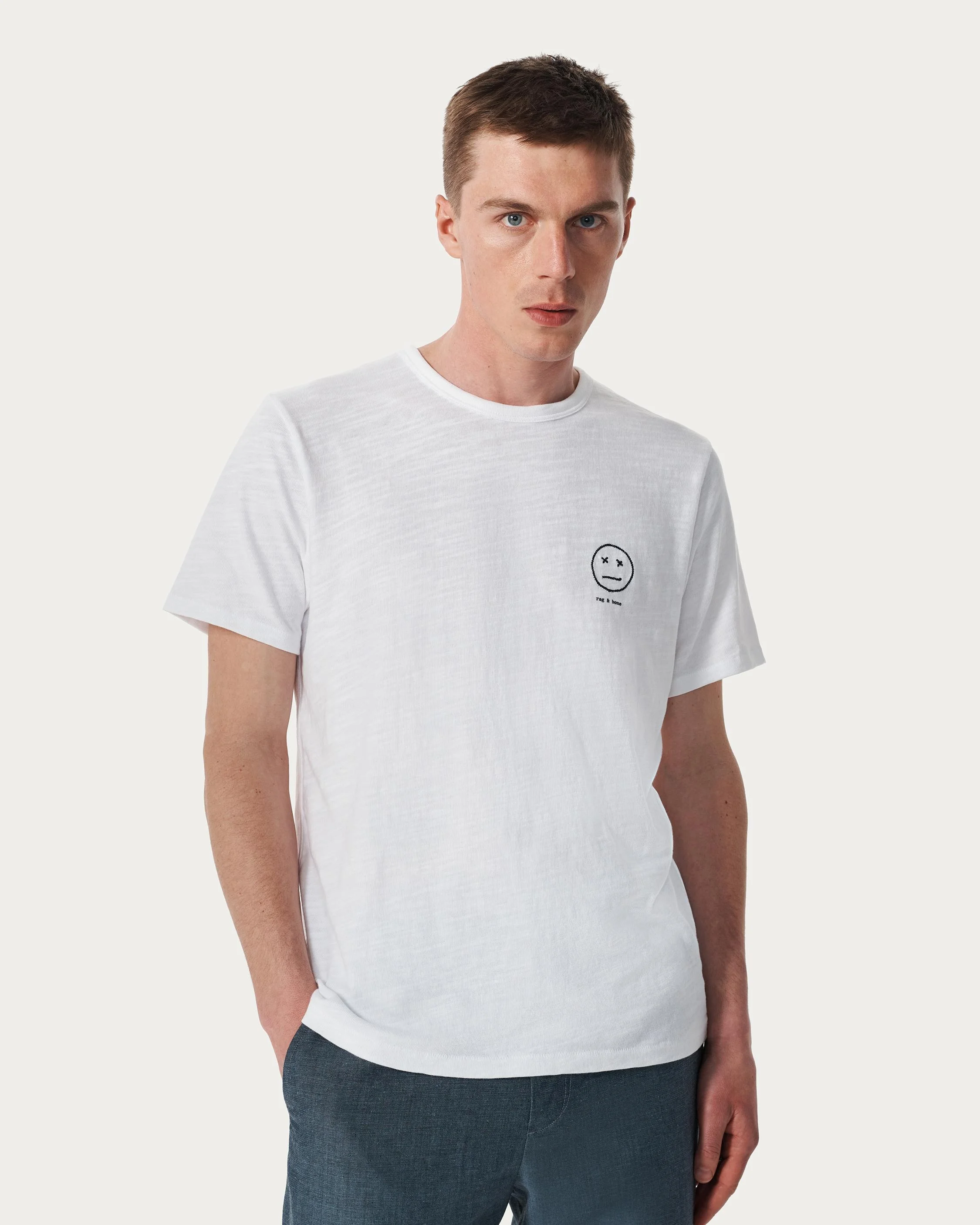 From the archive. Back with new expression. First hand-sketched in 2014, Sour Face is our deadpan ode to New York: sharp, unfazed, and running on caffeine and grit. No logos. No drama. Just clean lines, solid craft, and a bit of attitude. Embroidered on the Classic Flame tee made from long-staple Peruvian cotton that's durable and soft. Size & Fit • Classic fit • Fits true to size • Size Medium: Back length 26.5", chest 42", sweep 42", sleeve length 17.5" • Model is 6'1" wearing size medium Features & Details • 100% cotton • Machine wash cold & tumble dry low • Back neck tape • Sour face embroidery • Made in Peru Product ID: RF4625FT2GM