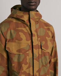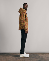 A hooded jacket crafted from Japanese stretch cotton in double-sided camo print. Complete with a bungee cord at the hood and hem for a customized fit. Size & Fit Oversized Size Medium: Front length is 27 1/4", back length from center back neck 25 5/8",chest 47",sleeve length 36" Model is 6'1" wearing a size medium Features & Details 98% Cotton 2% Spandex Machine wash, do not tumble dry Japanese double sided printed camo tactic jacket, heavily laundered to soften hand feel, cotton combo at bindings and internal elbow patch Bungee cord package at hood and bottom hem, black cotton brushed pocketing, name label at internal pocket, plastic coil zippers at pockets Metal center front zipper, exposed snaps at cuffs and cuff adjusters Hidden snaps at center front placket and chest pocket, metal rb logo at sleeve Imported Product ID: MBW23S233207ML