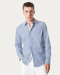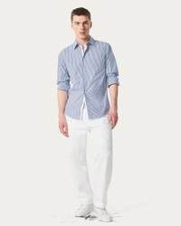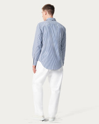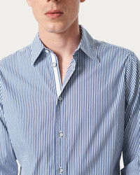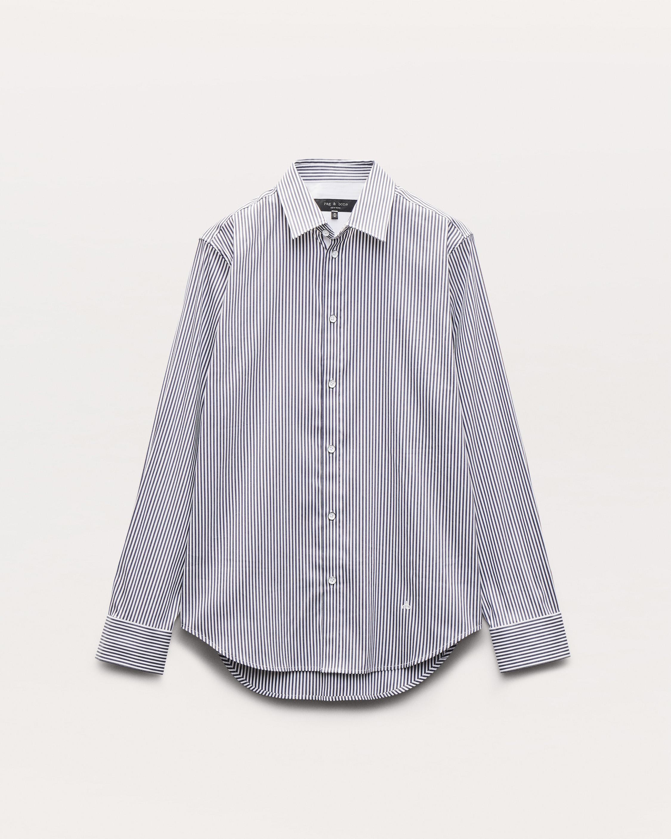 Perfectly tailored. Cut close to the body, Patrick is our slim-fit shirt that looks just as sleek solo as it does layered under a suit jacket. This striped version is crafted from a cotton-blend poplin with a touch of stretch for total comfort. Size & Fit • Slim fit • Fits true to size • Size Medium: back length 31.75" | chest 43.5" | sleeve length 35.25" • Model is 6'2" wearing size medium Features & Details • 78% cotton, 19% nylon, 3% spandex • Distressed buttons at center front and cuff, bone button at the sleeve placket • Button closure • Machine wash cold & tumble dry low • Imported Product ID: MBW25PA024BGML