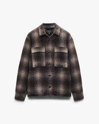 An elevated take on the shirt jacket. Tailored from a soft double-face wool blend produced in partnership with Bellandi, a storied Italian mill with a strong heritage in wool outerwear. Its blurred plaid pattern, custom-developed by our in-house studio, stands out without saying much. Finished with refined details: a point collar, shank button placket, and flap pockets that keep it streamlined. Size & Fit • Fits true to size • Size medium: Body length 27.5", chest 48", sleeve length 35.25" • Model is 6'2" wearing size medium Features & Details • 70% wool, 25% polyamide, 5% other materials • Dry clean only • Button-up front • Distressed shank buttons • Leather logo patch • Two chest flap pockets and two side-seam pockets • Imported. Italian fabric produced in partnership with Bellandi. Product ID: RV5225F0MWO