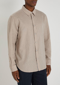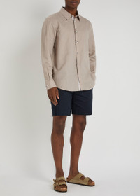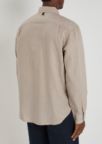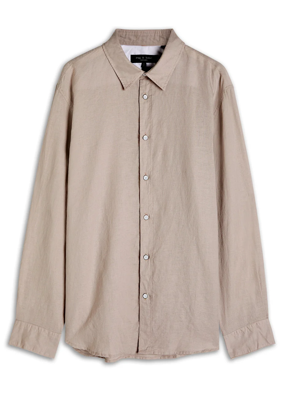 Info & Care rag & bone linen-blend shirt Pleats at button-fastening cuffs, grosgrain tab at back neck, wide box pleat, designer embroidered faux side splits, curved hem, longer back hem Button fastenings through front 60% linen, 40%;cotton Machine wash Size & Fit Length shoulder to hem: 28.5 inches/ 72.5cm; back: 30 inches/ 76.5cm Midweight Slightly loose fit Model is 6'1"/ 185cm, chest size 38 inches chest and wears a size medium