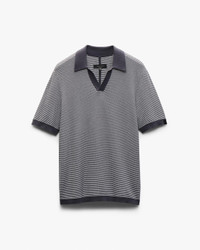 A rooted-in-retro rag & bone essential, rendered entirely for today. This buttonless polo shirt is knit from a lightweight cotton blend with vintage-inspired chevron stitches in two contrasting colors to create the appearance of stripes. Its distinct look and texture stand out whether worn solo over denim or layered under a blazer. Size & Fit • Fits true to size • Size Medium: Back length 25.75", chest 42.5", sweep 41", sleeve length 19.25" • Model is 6'2" wearing size medium Features & Details • 53% cotton, 36% viscose, 11% polyamide • Machine wash cold inside out on delicate & lay flat to dry • Color may bleed • Suede rag & bone logo tab at sleeve cuff • Imported Product ID: RH3325F6MCO