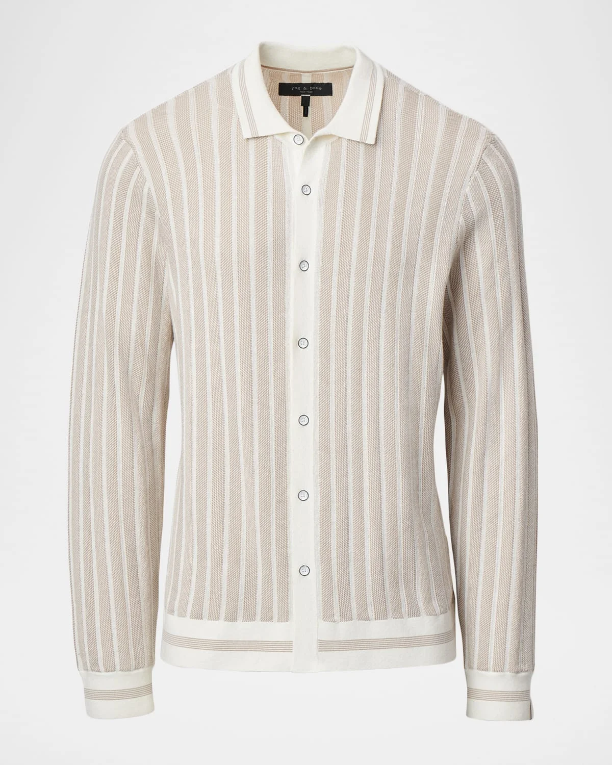This Rag amp; Bone shirt is from the Harvey collection with a vintageinspired stitch that reveals texture and a lightweight feel. Ribbed collar Button placket Metal buttons Suede RB logo tab on the left sleeve Ribbed cuffs and hem Classic fit Viscose/nylon/polyamide Dry clean Imported