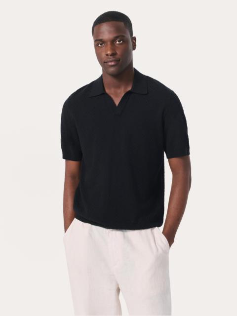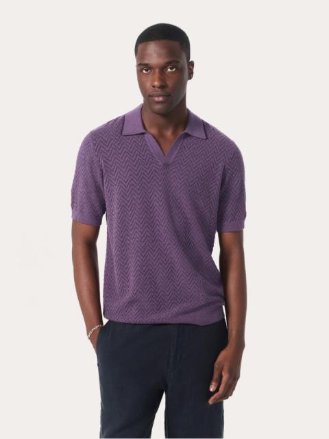 Made for any warm-weather activity, whether formal or casual. This buttonless Johnny collar polo is knit from cotton-blend terry yarn with a plush toweling texture. The airy stitches bring dimension to its easygoing yet refined herringbone pattern. With a classic fit, it elevates everything from jeans and shorts to a swimsuit after a dip. Size & Fit • Classic fit • Fits true to size • Size Medium: Back length 26.25", chest 42", sweep 39.5", sleeve length 18.75" • Model is 6'3" wearing size medium Features & Details • 44% cotton, 41% viscose, 15% polyamide • Machine wash cold inside out on delicate & lay flat to dry • Do not dry clean • Suede RB logo tab at sleeve cuff • Imported Product ID: MBS25P019NC19