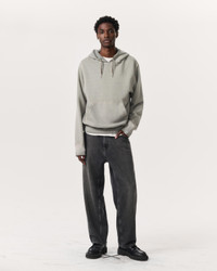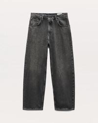 rbBAGGY. Our new perfectly oversized fit. Mid-rise with a slight taper through the thigh and a wide, roomy leg. Cut from Authentic Rigid, a structured denim designed to break in, whisker, and fade over years of wear. In Onyx, a washed black. Size & Fit Mid-rise, roomy fit 13 1/8" rise, 28 1/2" inseam, 18" leg opening Model is 6'2" Features & Details 100% Cotton Authentic Rigid Denim in Onyx, a washed black. Machine wash cold with like colors, color may bleed, tumble dry low. Zip fly with button closure Five-pocket silhouette Imported Product ID: MED25S1255RGOX