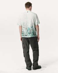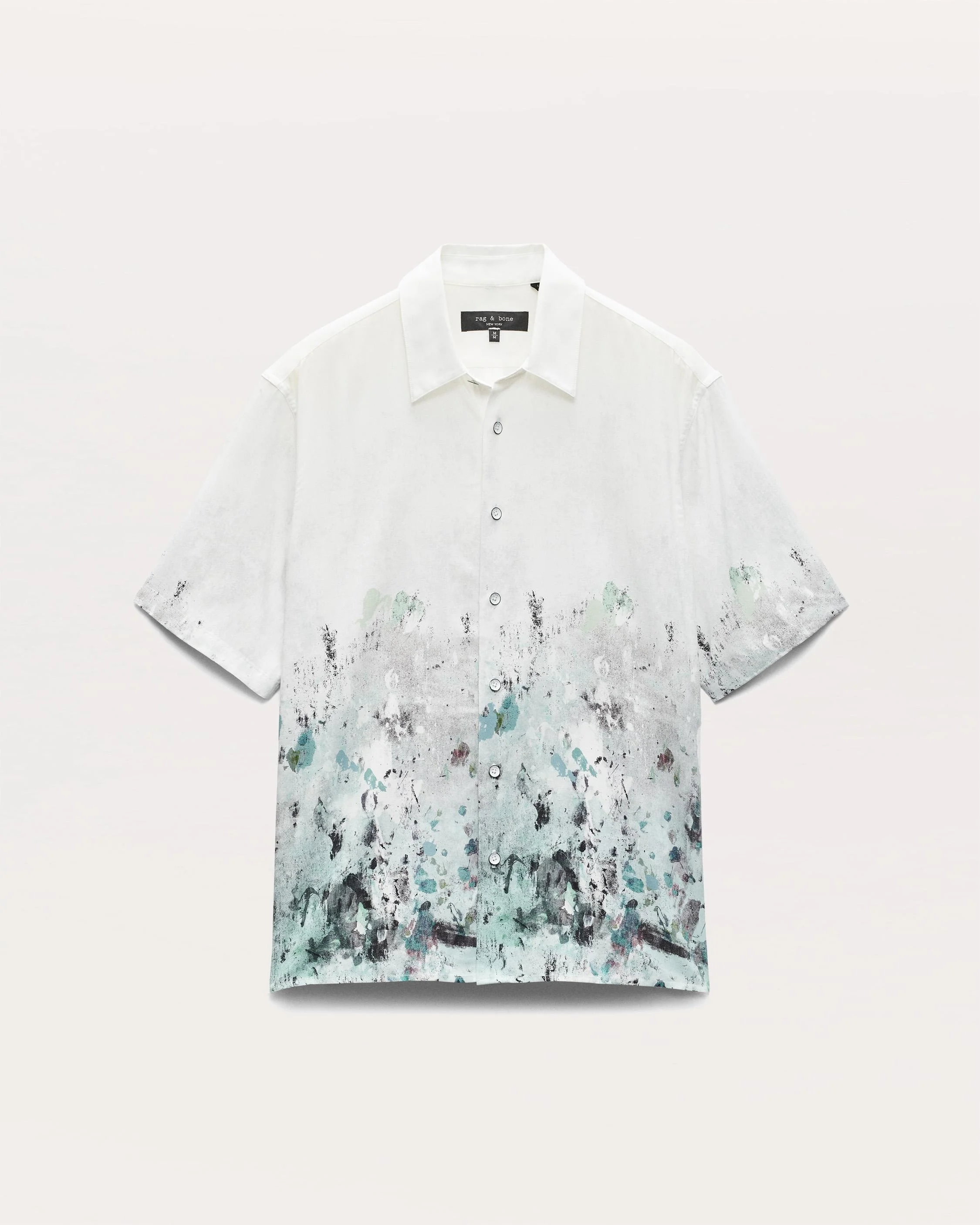 Our favorite short-sleeve button-up shirt, cut for a classic fit from fluid twill. It's updated for the season with a paint splatter print inspired by 20th-century artists in the SoHos of New York and London, who famously captured the raw creative energy of the times. Size & Fit Relaxed fit Size Medium: Back length 27 1/2", chest 46 1/2", sweep 45 1/2", sleeve length 20 1/4" Model is 6'1" wearing size medium Features & Details 100% Viscose Machine wash cold with like colors Distressed white buttons at center front White cotton grosgrain tape under buttons Imported Product ID: MBW25SA028LVML