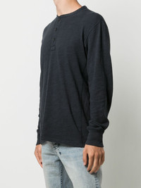round-neck long-sleeve top navy blue cotton tonal design round neck front button placket long sleeves straight hem Imported Composition Cotton 100% SIZE & FIT Model measurements Height 6 ft 2 in(1.88 m) Bust/Chest 38.18 in(97 cm) Hips 37 in(94 cm) Waist 29.92 in(76 cm)