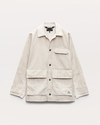 Heritage workwear, reimagined the rag & bone way. This oversized twist on vintage firefighter jackets is crafted from structured cotton canvas. It's specially dyed and washed to create a unique sun-faded look throughout. Take your typical size for a looser look, or size down for a closer fit. Size & Fit • Relaxed fit • Fits large to size. Consider sizing down for a closer fit. • Size Medium: Back length 30.5", chest 51.5", sleeve length 35.25" • Model is 6'1" wearing size medium Features & Details • 100% cotton • Machine wash cold & tumble dry low • Shank buttons at center front • Exposed snaps at cuff with cuff adjuster snaps • Hidden snaps at pockets • Two waist flap pockets and one chest pocket • Front shank button closure • Imported Product ID: MBW25P2009CNML