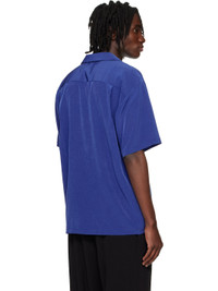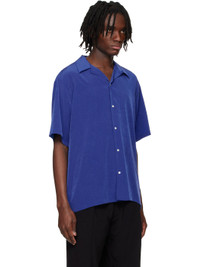Lightweight triacetate-blend crepe satin shirt. · Open spread collar · Button closure · Twin pleats at back yoke Supplier color: Blue 57% triacetate, 43% polyester. Made in Japan 251599M192001