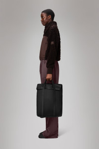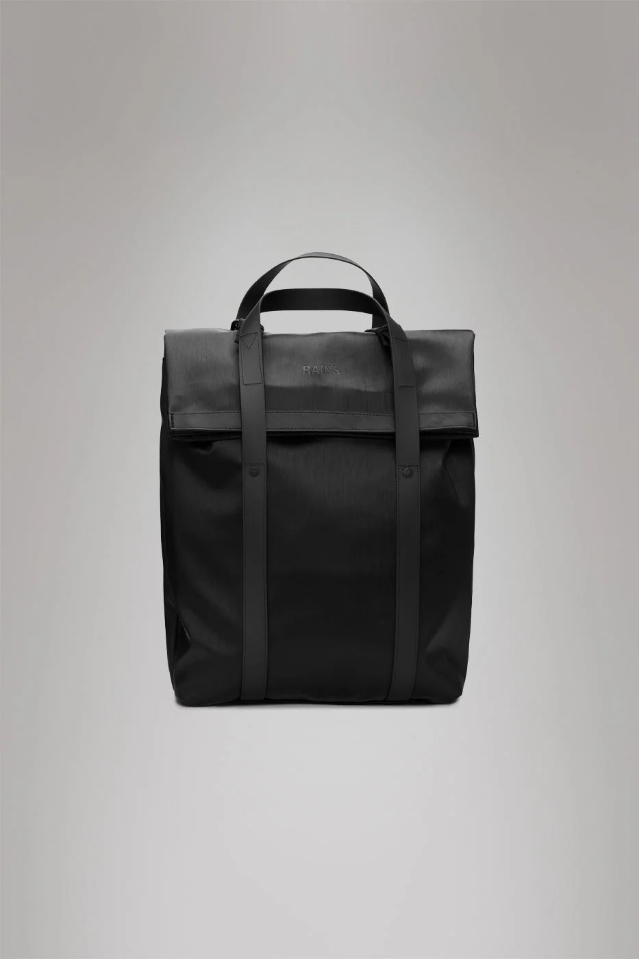 2 Way Tote Backpack is a clean, commuter-friendly design with tote function. 2 Way Tote Backpack is characterized by a fold-top opening and signature TPU strap details with top handles. The fold-top opening gives full access to a spacious main compartment with multiple slip and zip pockets and a padded pocket that fits a 16” laptop. On the backside you find a pocket with quick entry for smaller essentials like keys and phone. Wear the 2 Way Tote Backpack as a traditional backpack by adjusting the padded shoulder straps, or as a tote bag using the top handles. Snap attachments on the straps catch excess length of the straps when worn as a tote. 2 Way Tote Backpack is cut from Rains' signature PU fabric, engineered for carrying strength, durability and a smooth feel. SKU: 12940\84 Details Dimensions: 22.8 in x 4.7 in x 13 in Capacity: 4 gal Composition: 100.00% PES (Polyester) Water column: 8000 mm Weight: 28.9 oz Features - Waterproof signature PU fabric - Fold-top closure with secure c-clips at backside - Quick entry pocket on backside for small items - Internal padded pocket fits 16" laptop - Two internal slip pockets - Internal secure zip pocket - Adjustable padded shoulder straps - Padded mesh back panel - TPU top handles - Snap attachment on straps to catch excess length of the strap when worn as a tote - Trolley slip strap in webbing