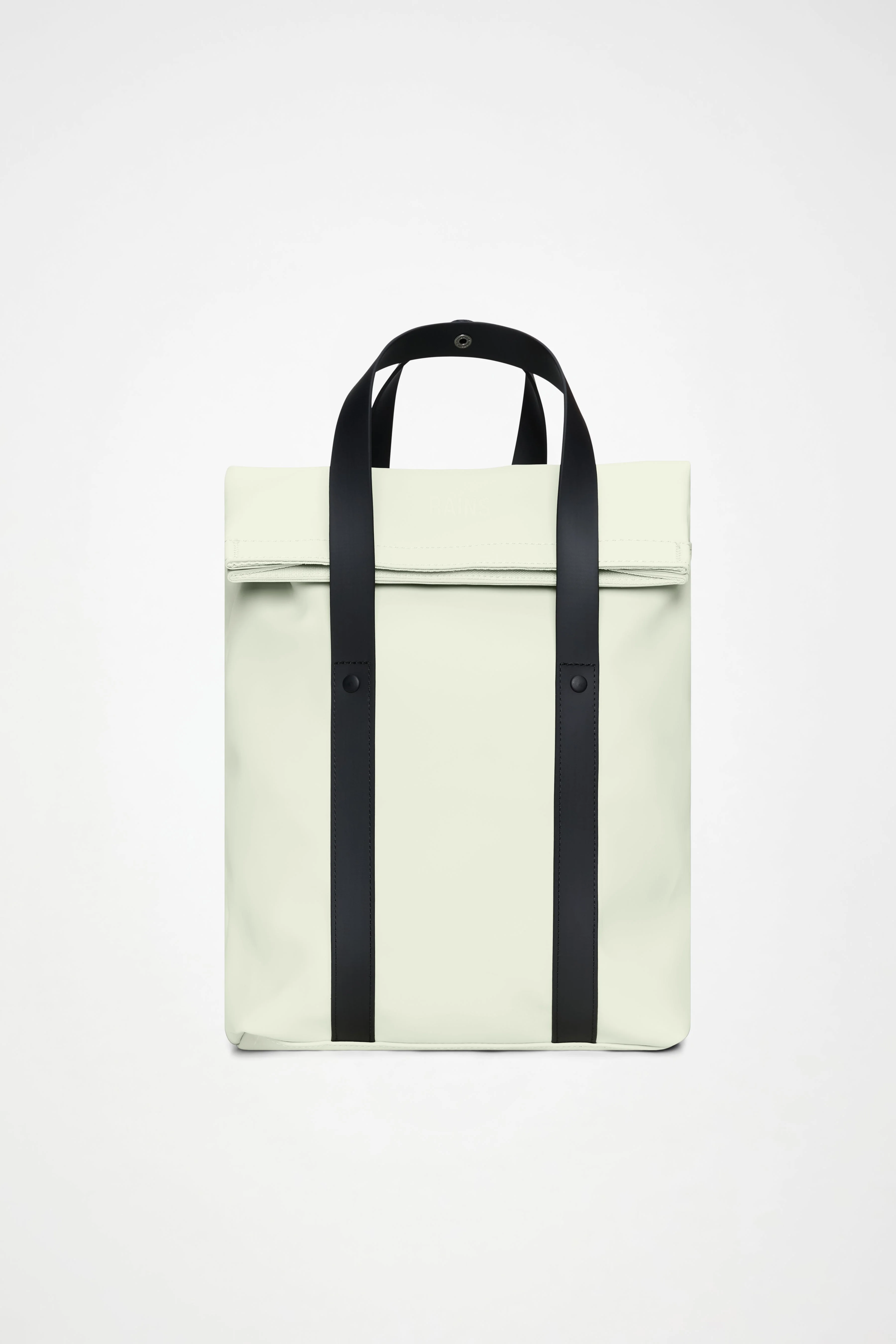2 Way Tote Backpack Mini is a clean, commuter-friendly design with tote function in a downscaled mini version. This mini backpack design is characterized by a fold-top opening and signature TPU strap details with top handles. The fold-top opening gives full access to a main compartment with multiple slip and zip pockets and a padded tech pocket. On the backside you find a pocket with quick entry for smaller essentials like keys and phone. Wear the 2 Way Tote Backpack Mini as a traditional backpack by adjusting the padded shoulder straps, or as a tote bag using the top handles. Snap attachments on the straps catch excess length of the straps when worn as a tote. 2 Way Tote Backpack Mini is cut from Rains' signature PU fabric, engineered for carrying strength, durability and a smooth feel. SKU: 12780\146 Details Dimensions: 14 in x 3.5 in x 9.8 in Composition: 100.00% PES (Polyester) Water column: 8000 mm Weight: 24.7 oz Features:
