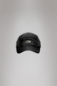 5 Panel Ripstop Cap is Rains’ take on the classic headpiece with 5 constructions. The 5 Panel Ripstop Cap is characterized by a larger and squarer shape at front. It features eyelets to ensure ventilation for breathable comfort. An adjustable strap with buckle ensures a perfect fit. Cap is cut from durable and waterproof nylon-ripstop. It is designed with a semi-transparent aesthetic and a soft matte finish featuring tonal branding. SKU: 20340\01 Details Composition: 100.00% PA (Nylon) Water column: 4000 mm Windproof: Protection against windchill Weight: 2.5 oz Features - Waterproof lightweight nylon-ripstop - Adjustable strap with buckle - Ventilation eyelets - 5 panel construction - Branding print