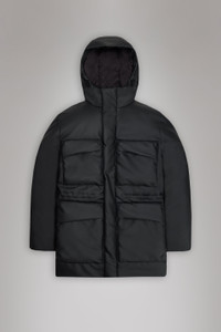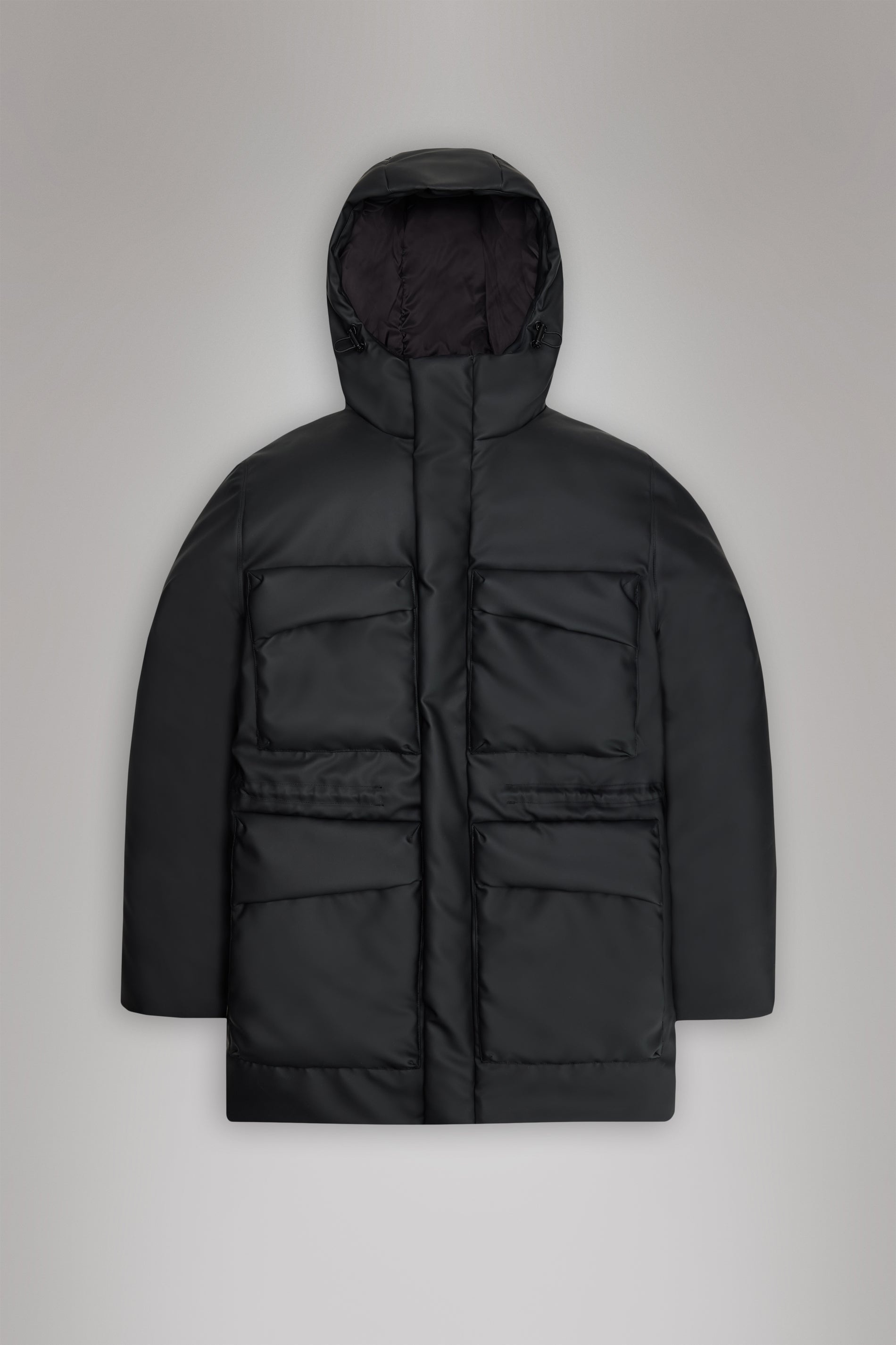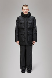 Askim Long Cargo Jacket is an insulated winter jacket. Characterized by parka-length in a clean and smooth design. Askim Long Cargo Jacket features inside elastic string adjustment at waist, an inside zipped pocket and outside zipped cargo pockets with side entrance and fleece lining. Style is finished off with a detachable insulated hood with elastic string adjustment and an insulated stand up collar with fleece lining, making it the perfect jacket for city commutes in colder climates. This roomy jacket is cut from Rains’ signature PU fabric with a heavy backside, making the quality more durable. The finish is lightweight with a smooth feel, giving the jacket a clean workwear vibe. SKU: 15930\01 Details Composition: 100.00% PES (Polyester) Water column: 5000 mm Breathability: 2000 g/m2 water vapor transmission Windproof: Protection against windchill Fit: Long Weight: 74.1 oz Features - Waterproof signature PU fabric with a heavy backside - Detachable insulated hood with elastic string adjustment - Insulated stand up collar with fleece lining - Ribbed storm cuffs - Inside elastic string adjustment at waist - Outside zipped cargo pockets with side entrance and fleece lining - Inside zipped pocket - Welded seams - Rubberized weatherproof hardware - Chin guard