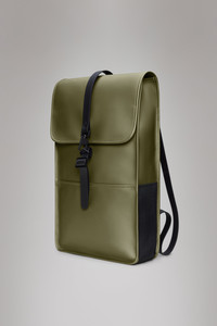 Backpack is clean and ever-contemporary. Silhouette is characterized by its squared shape and flap with magnet snap fastenings. This rucksack features an internal laptop pocket, a spacious main compartment and a concealed external phone pocket on the back panel. The laptop pocket fits a 15" laptop with sleeve, making the squared backpack a perfect computer-ready staple for commuting on bike or by foot. Backpack is cut from Rains' signature PU fabric, engineered for carrying strength, durability and a smooth feel. SKU: 13000\105 Details Composition: 100.00% PES (Polyester) Water column: 8000 mm Weight: 34.9 oz Features - Waterproof signature PU fabric - Flap with magnet snap fastenings - Single main compartment - External back zip pocket - Internal zip pocket - Flat pocket fits 15" laptop - Adjustable shoulder straps - Webbing carry handle