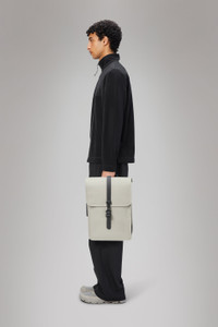 Backpack Mini is a downscaled version of Backpack. Silhouette is characterized by its squared shape and flap with magnet snap fastenings. This clean and ever contemporary rucksack features an internal laptop pocket, a spacious main compartment and a concealed external phone pocket on the back panel. The laptop pocket fits a 13" laptop with sleeve, making the squared backpack a perfect computer-ready staple for commuting on bike or by foot. Backpack Mini is cut from Rains' signature PU fabric, engineered for carrying strength, durability and a smooth feel. SKU: 13020\103 Details Composition: 100.00% PES (Polyester) Water column: 8000 mm Weight: 31.4 oz Features - Waterproof signature PU fabric - Flap with magnet snap fastenings - Single main compartment - External back zip pocket - Internal zip pocket - Flat pocket fits 13" laptop - Adjustable shoulder straps - Webbing carry handle